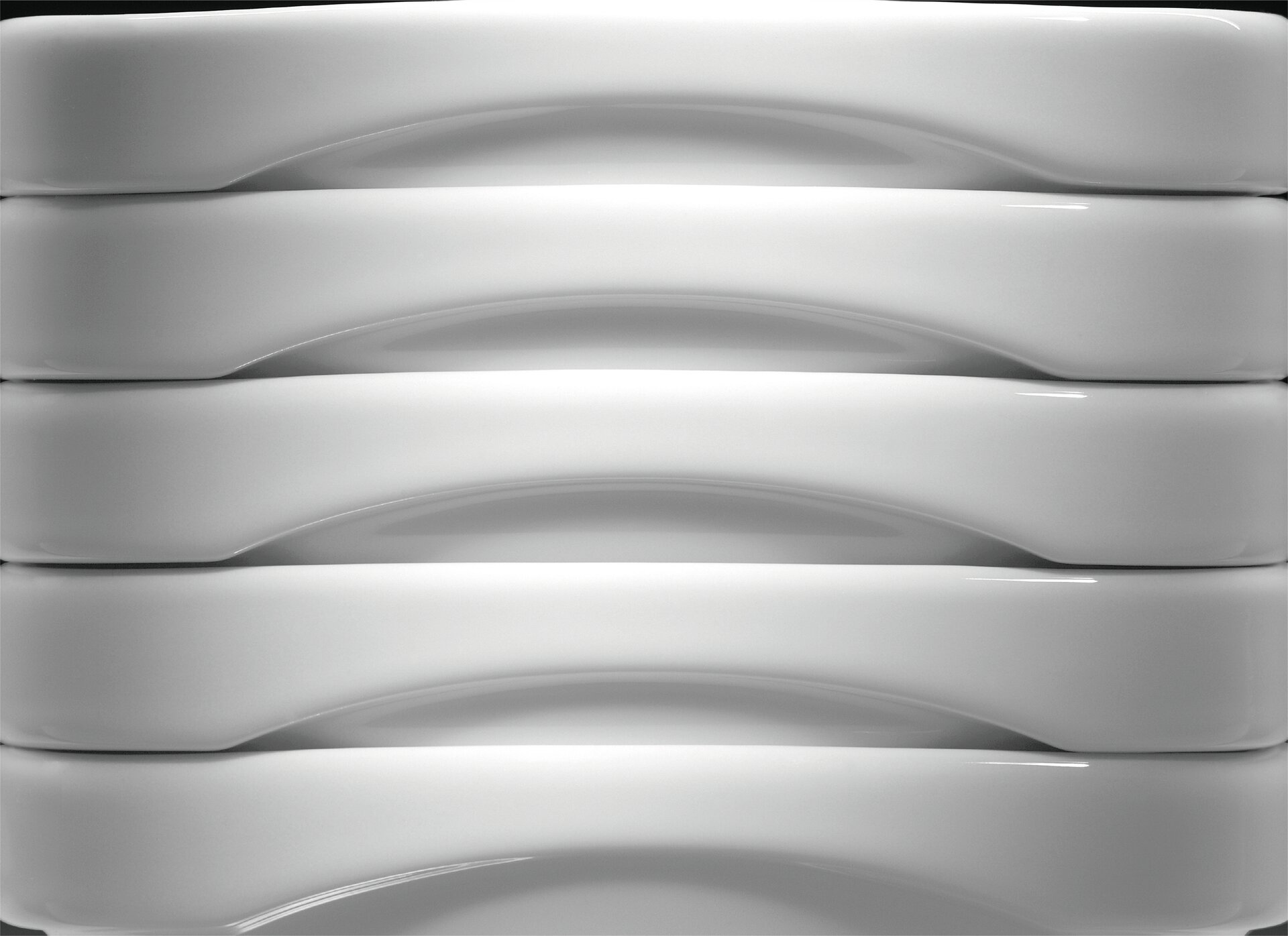 Bei Airflow geht die markante Ästhetik des Designs Hand in Hand mit Funktion und Ergonomie. Die geschwungene Formgebung wurde speziell für Systeme entwickelt. Sie ermöglicht einen besseren Luftaustausch, orientiert sich aber auch am Nutzen für den Menschen. So erleichtert sie Mitarbeitern in der Speisenverteilung das Handling. Für Patienten ist sie leicht nutzbar und erlaubt eine appetitliche Präsentation der Mahlzeiten – eine Geste der Wertschätzung.