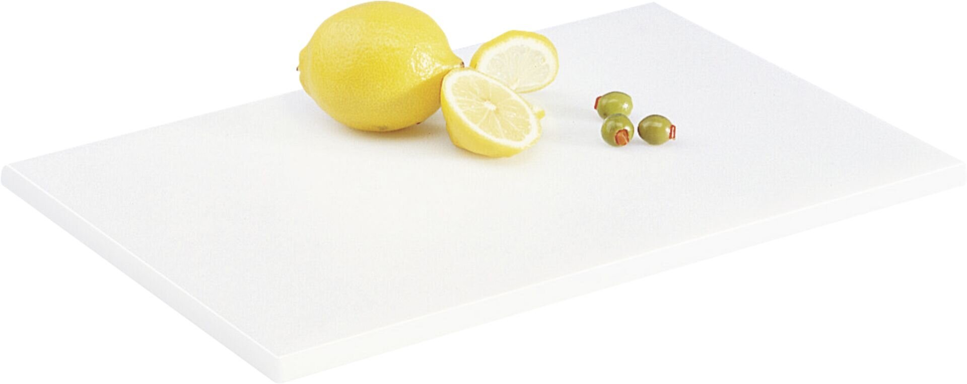 PE 500, ohne Saftrille, mit Antirutsch-Füßchen. Stärke 1,2 cm. Bis 80°C temperaturbeständig. Schneidbretter dürfen beim Spülvorgang nicht geklemmt werden. Keine heißen Gefäße aufstellen, kann zum Verziehen der Platten führen.