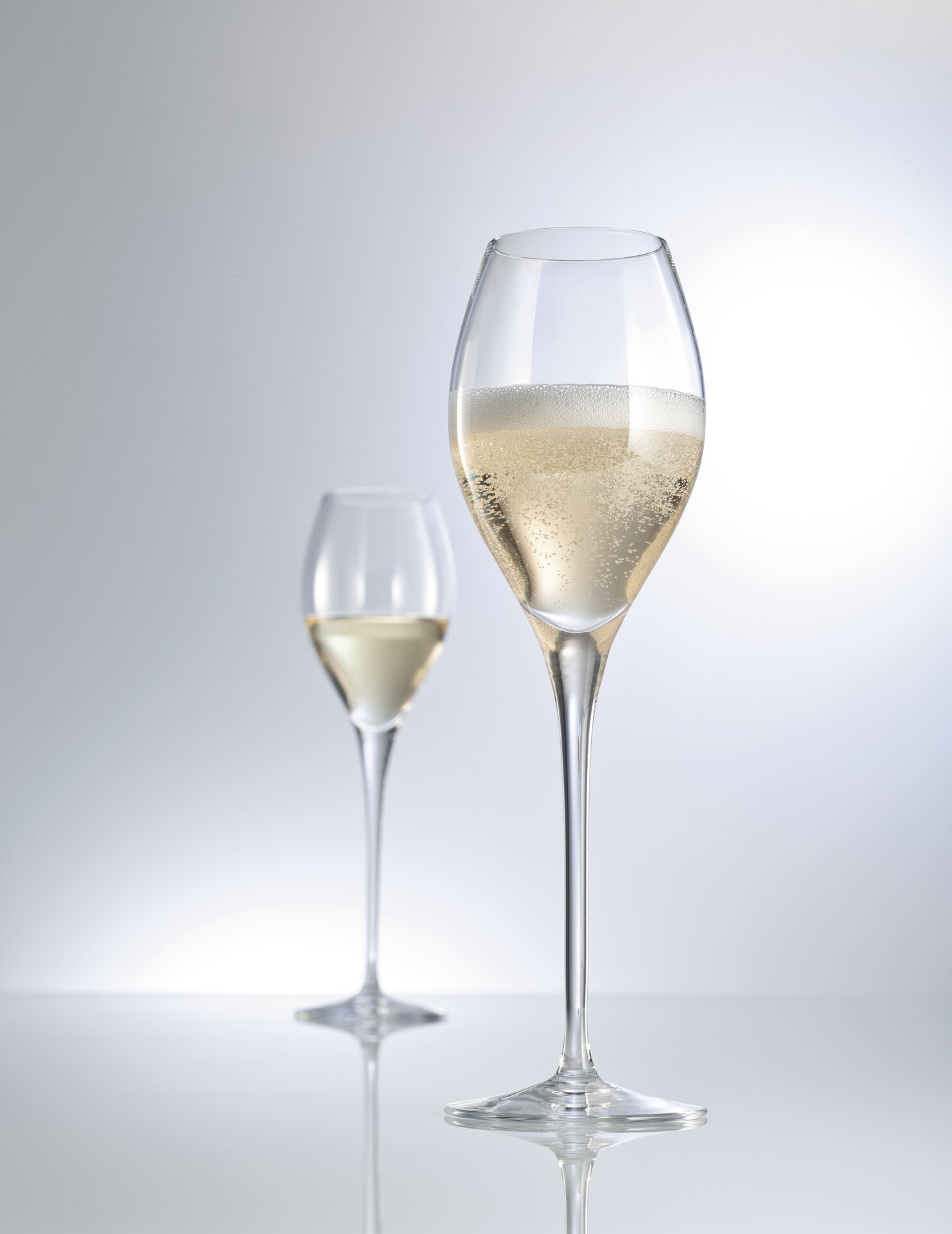 Das Glas der Serie Audience von Schott Zwiesel ist perfekt für große Anlässe. Ein fließendes Profil und stabile Proportionen machen das Glas zu einem ästhetischen Erlebnis mit hervorragender Alltagstauglichkeit. Der Moussierpunkt dient dazu, die im Champagner gelöste Kohlensäure verstärkt zum Aufperlen zu bringen.