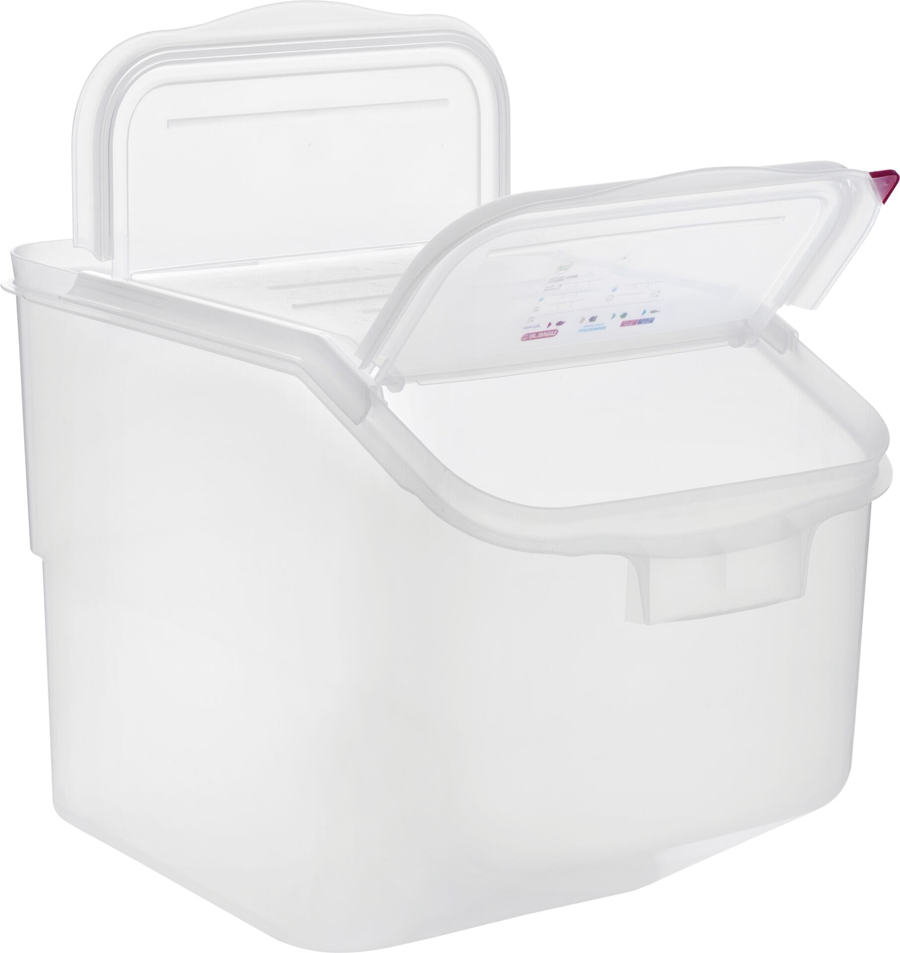 Polypropylen. Integriertes Etikett zum Beschriften, inklusive jeweils 4 verschiedene Farbplättchen zum einfachen Wechseln und Markieren. Mit seitlichen Griffen für einfache Handhabung und Transport. 1/1 GN Behälter ermöglicht FIFO-Handhabung, sowie voneinander unabhängige Befüllung und Entnahme. Abgerundete Kanten. Spülmaschinengeeignet, stapelbar. Doppelte Dichtung für perfekten Schutz.