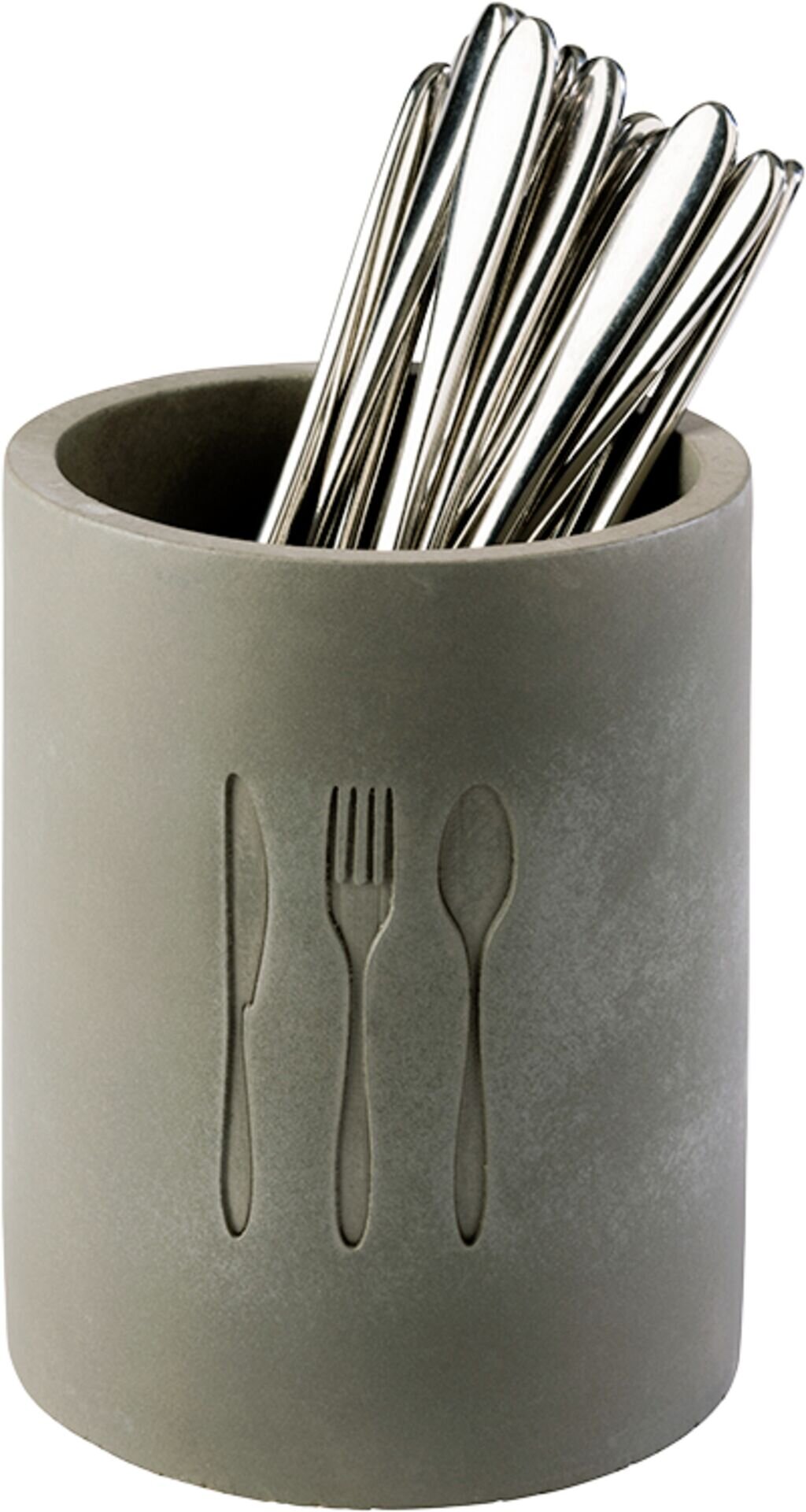 Beton. Mit Abflussloch und Besteck-Logo. Bodeneinlage aus Silikon zum Schonen der Messerspitzen, sowie möbelschonende Unterseite. Ø innen: 9,5 cm. Nicht spülmaschinengeeignet.