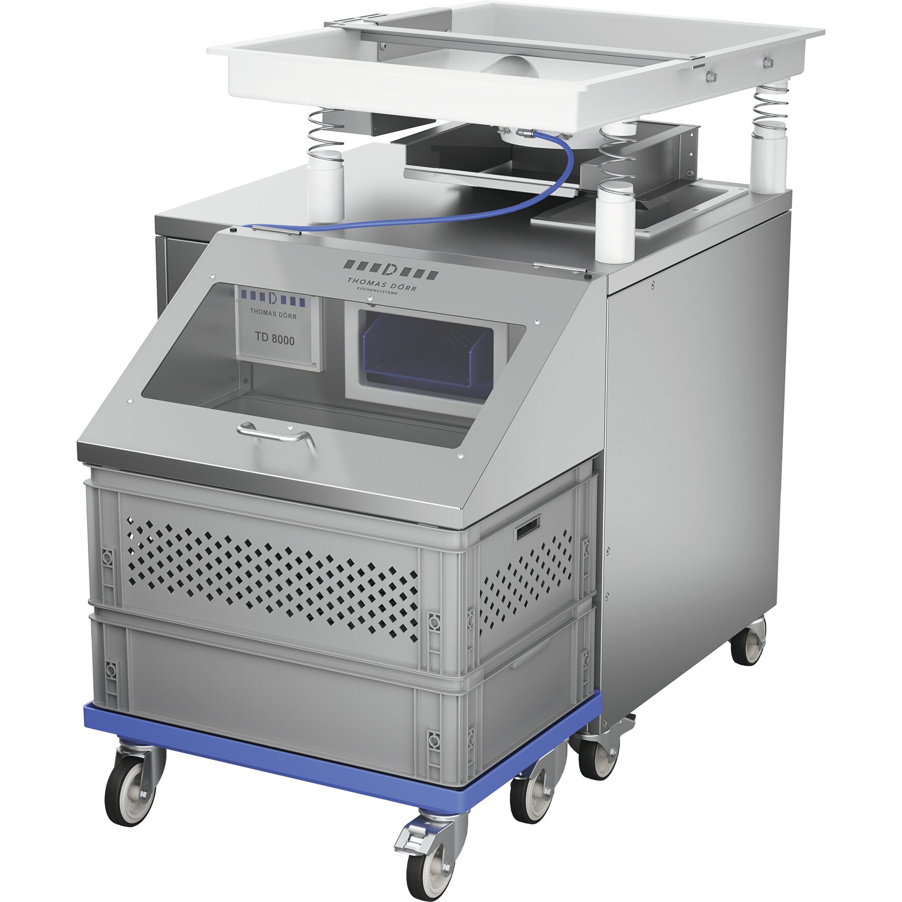 Die FILL&GO-Variante unseres Power-Modells TD 8000 trocknet und poliert nicht nur 8.000 Besteckteile pro Stunde, sondern befüllt sich auch automatisch selbst. Das gewaschene und nasse Besteck wird dazu einfach direkt aus den Spülmaschinenkörben auf die integrierte Rutsche gegeben.