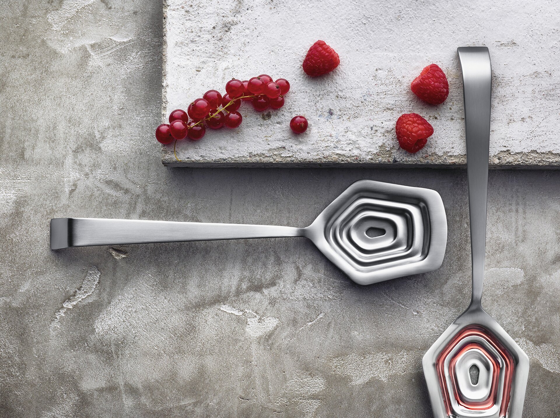 Kulinarische Veränderungen erfordern auch eine Weiterentwicklung des Buffets. Dies war der Anlass für die gemeinsame Gestaltung der Serie "Buffet Selection - 1309" zwischen Amefa und dem Designer Carsten Gollnick. Mit der Entstehung des Risottolöffels, reagiert der Designer auf den Trend Reis & Risottos. Dieser Trend erfordert andere Volumen in der Löffelgröße und auch eine andere Nähe zum Lebensmittel. Durch die reduzierte Stillänge erhält der Gast mehr Kontrolle beim Servieren.
