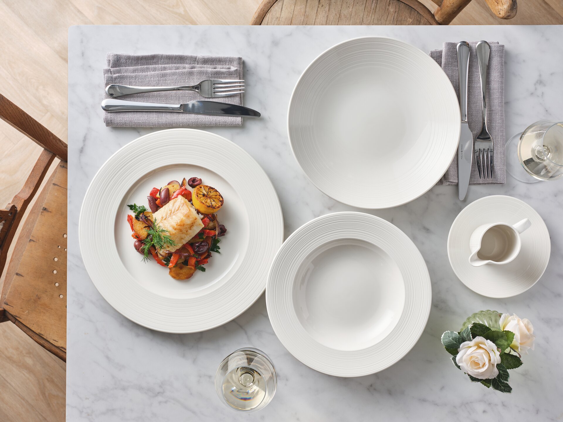 Die Concorde-Reihe ist von der anspruchsvollen Ästhetik des klassischen Mid-Century-Stils durchdrungen. Klare Linien und eine frische, dezente haptische Oberfläche harmonieren mit einem warmen, ansprechenden, cremefarbenen Ton, um einen lässigen und dennoch klaren Präsentationsstil für Speisen zu schaffen. Alle Artikel wurden sorgfältig entworfen, um in einer geschäftigen Küche diskret zu funktionieren und gleichzeitig eine hervorragende Haltbarkeit zu bieten. Ein Schlüsselmerkmal ist die Stapelbarkeit, die eine effiziente Lagerung von Gegenständen ermöglicht, ebenso wie die Kompatibilität, die es ermöglicht, verschiedene Gegenstände übereinander zu stapeln und eine gemeinsame Untertasse zu verwenden. Durch die Verwendung von Coupé- und Randprofilen bietet die Concorde-Reihe eine moderne und dennoch funktionale Ästhetik, um die allerbeste Küche zu präsentieren.