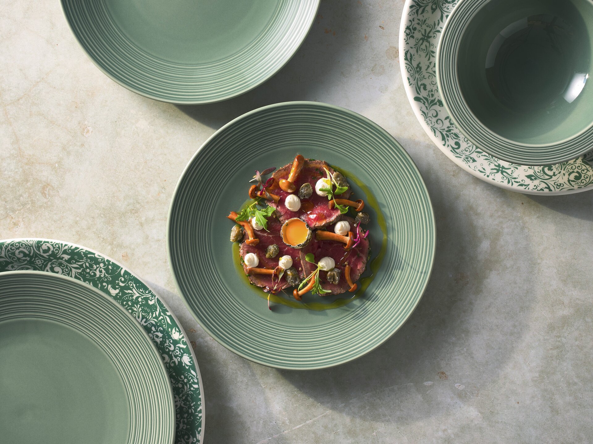 Die Concorde-Serie ist geprägt von der raffinierten Ästhetik des klassischen Mid-Century-Stils. Klare Linien und eine frische, dezente Oberfläche harmonieren mit einem warmen, ansprechenden Cremeweiß und sorgen für eine lässige und zugleich elegante Speisenpräsentation. Alle Artikel sind sorgfältig designt, um auch in der geschäftigen Küche diskret und funktional zu sein und gleichzeitig eine hohe Langlebigkeit zu gewährleisten. Stapelbarkeit ist ein wichtiges Merkmal für eine effiziente Aufbewahrung der Artikel, ebenso wie die Kompatibilität, die das Stapeln verschiedener Artikel und die Verwendung eines gemeinsamen Untertellers ermöglicht. Die Concorde-Serie bietet mit ihren verschiedenen Formen und Profilen mit Rand eine moderne und zugleich funktionale Ästhetik für die Präsentation Ihrer Lieblingsgerichte.