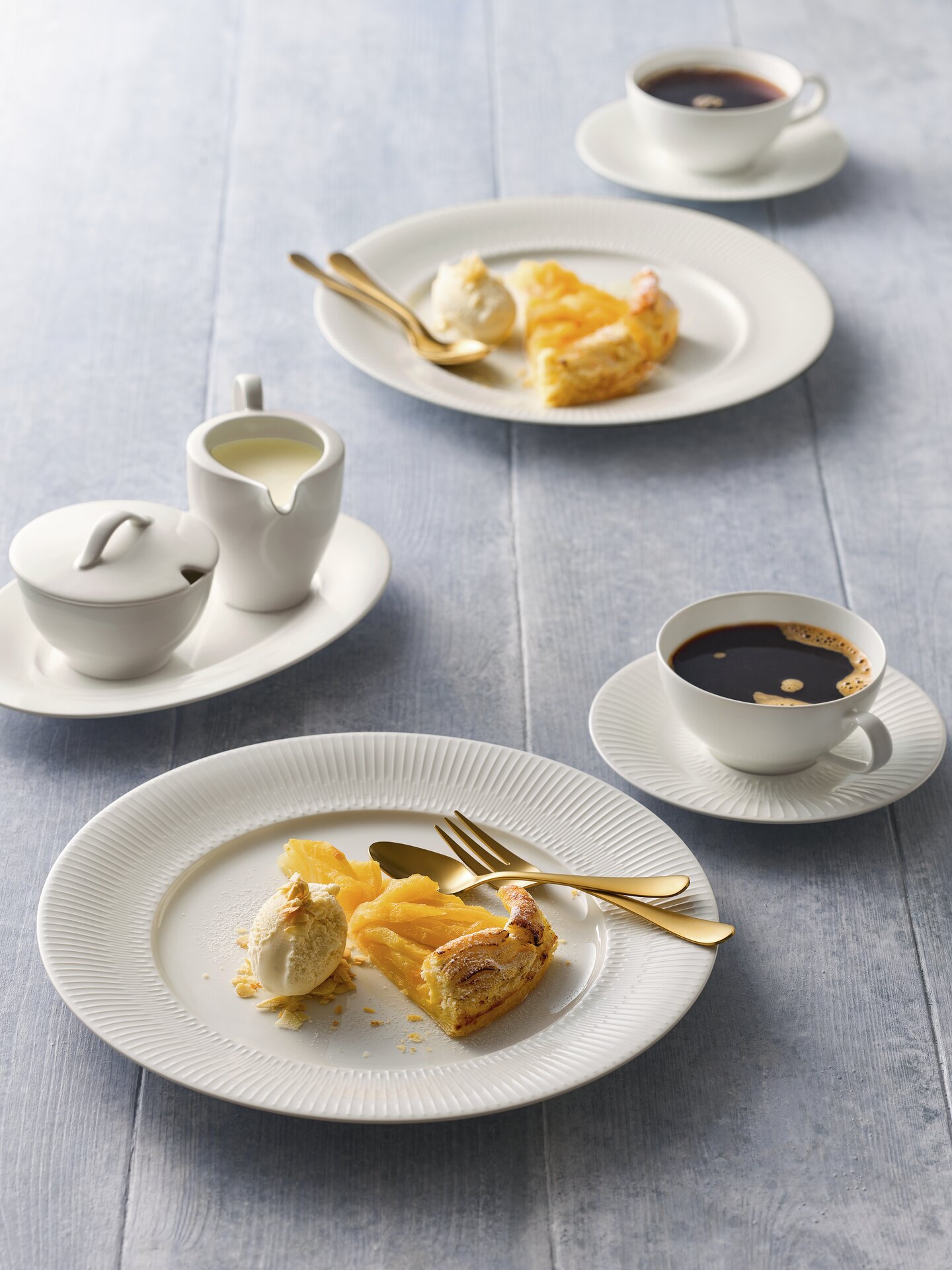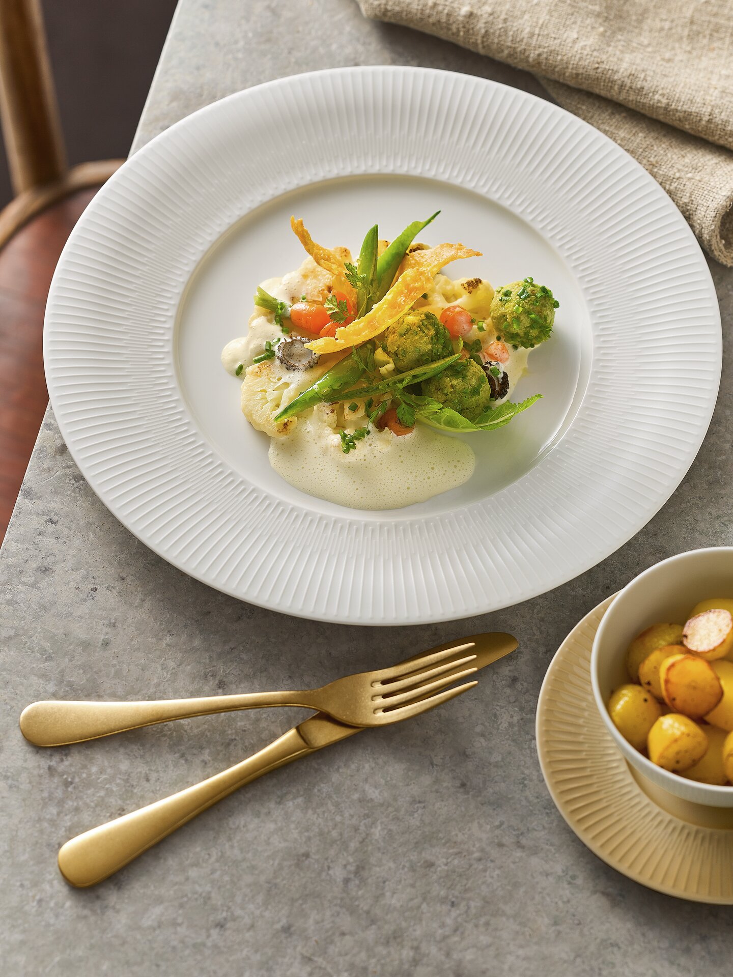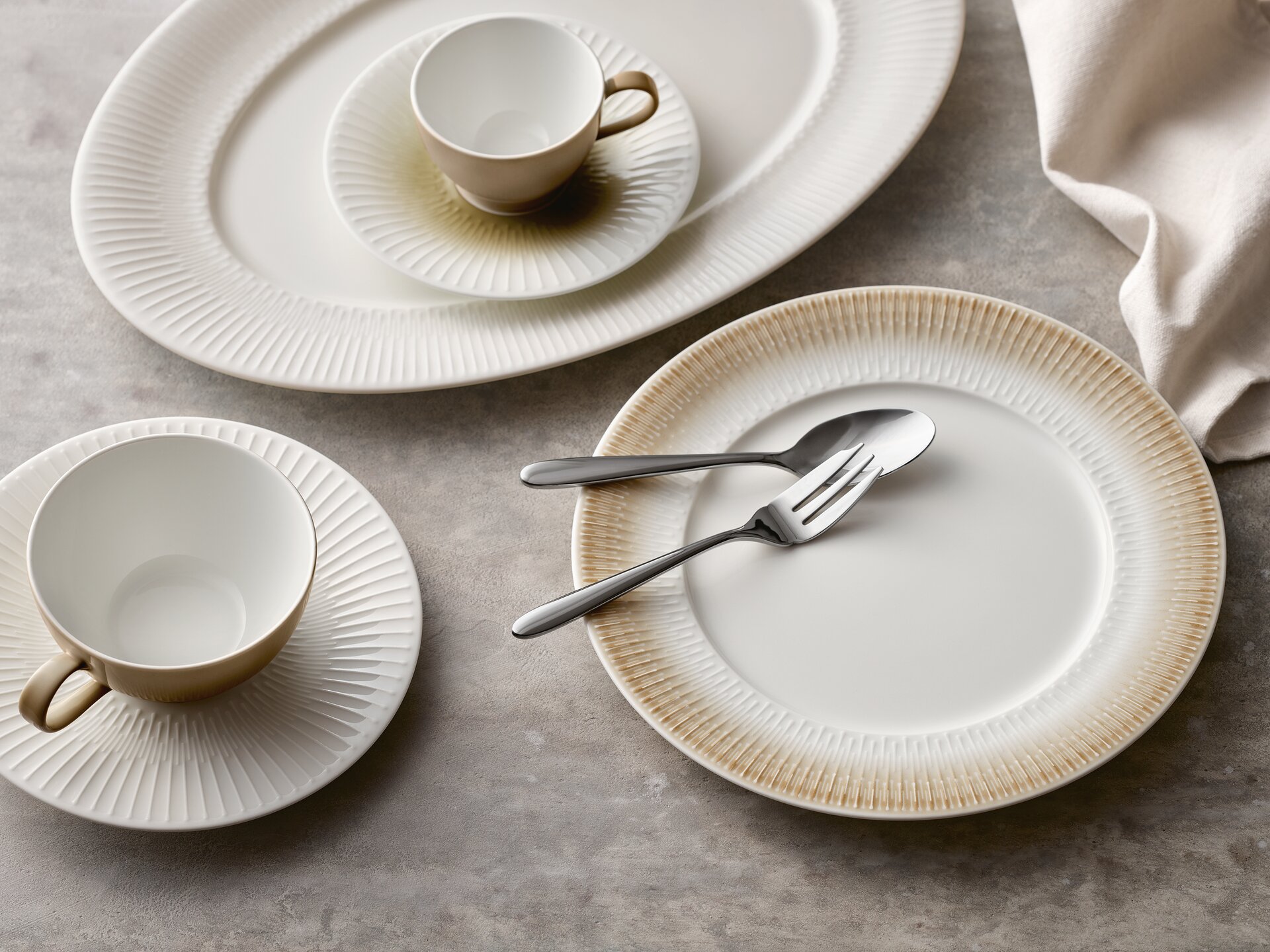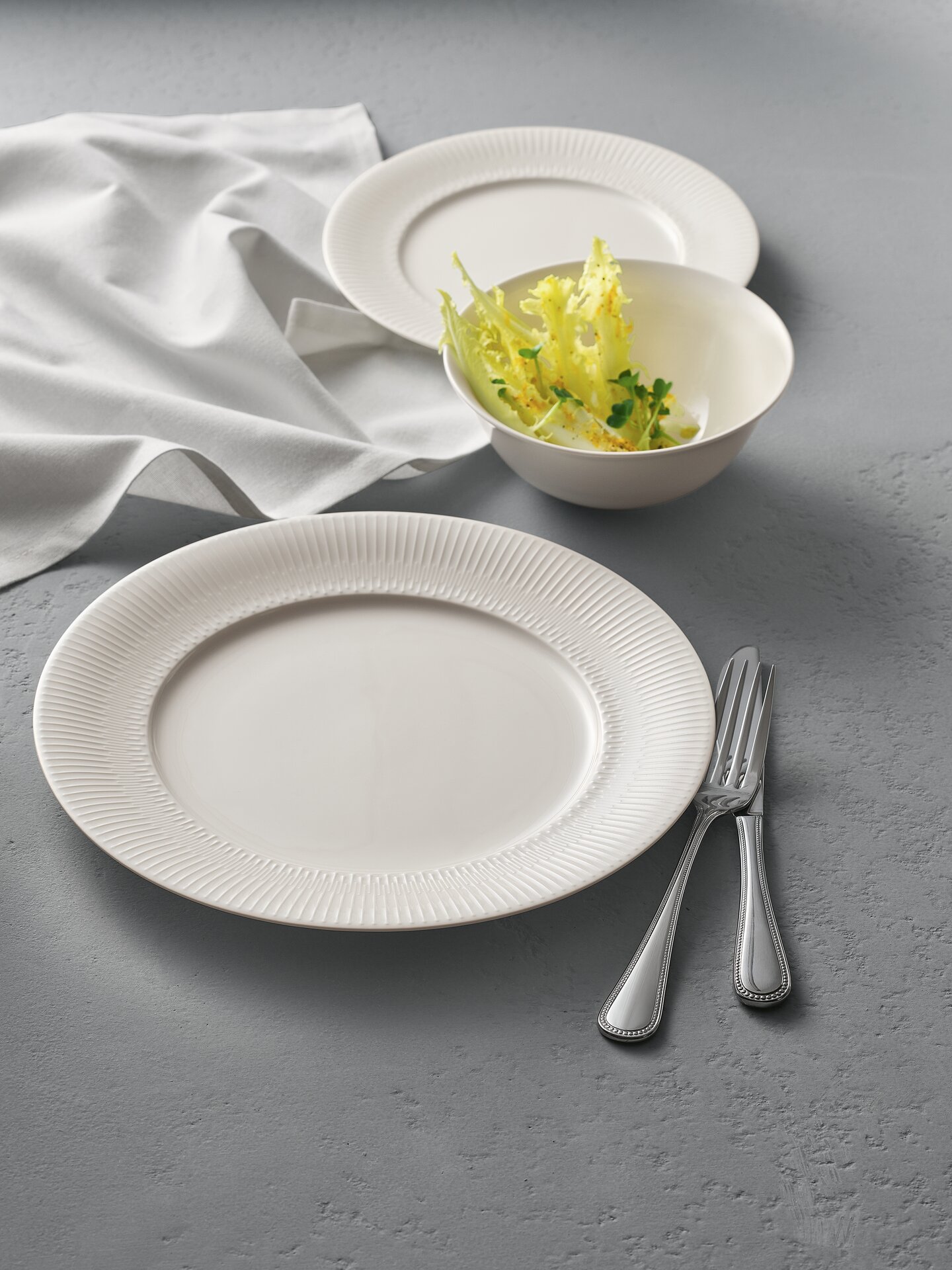 DELIGHT kombiniert Basics wie Fahnen- und Coupteller mit außergewöhnlichen Formen und dem unverwechselbaren Material Noble China. Für diesen konzeptionellen Ansatz und die designprägende Blattform wurde DELIGHT mit dem renommierten German Design Award Specials ausgezeichnet. Alle Artikel sind vielseitig in Hotels und Restaurants einsetzbar. Optisches Highlight mit haptischer Gestaltung: das VIBES Relief auf den Fahnentellern.