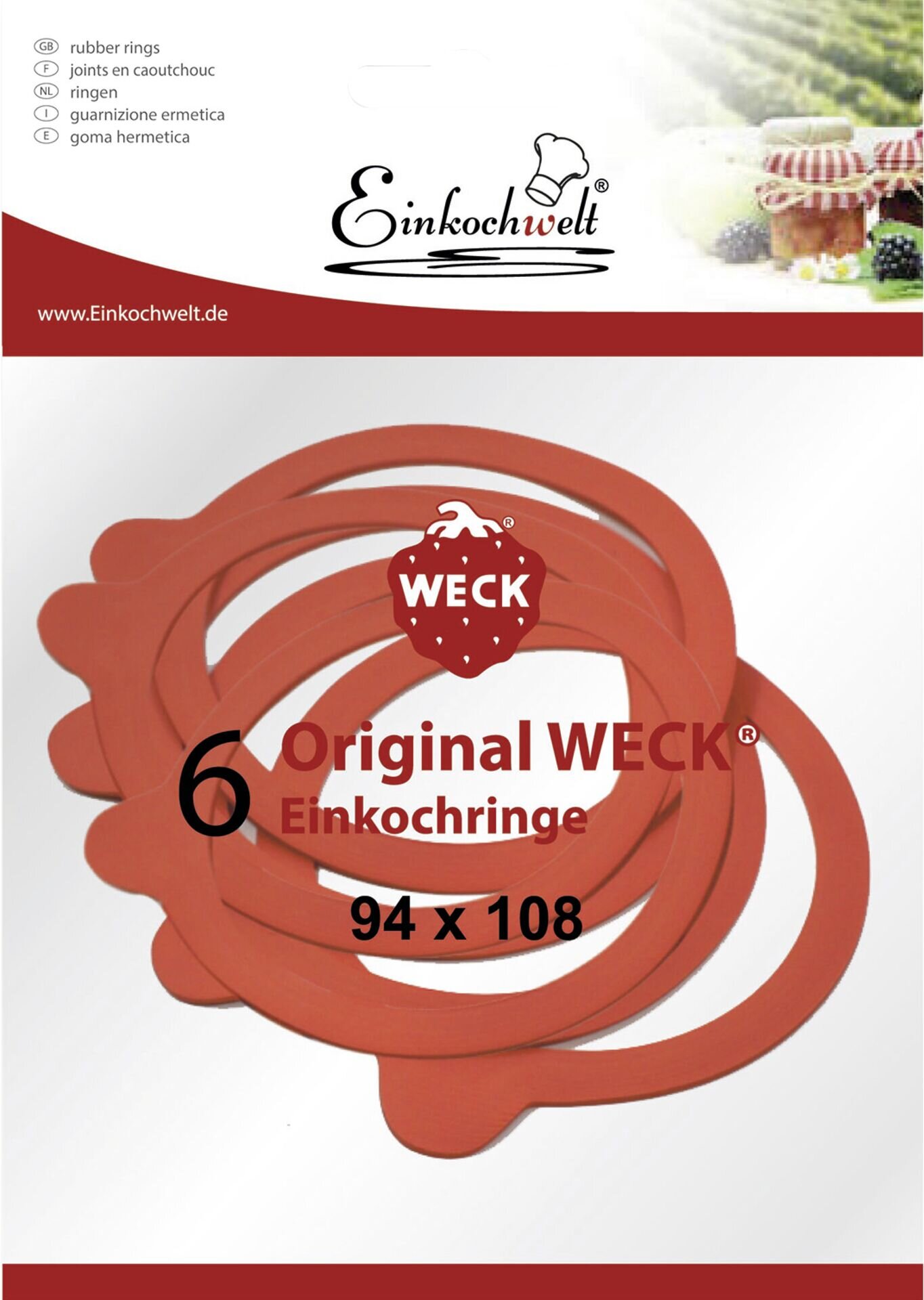 passend zu Weck-Gläsern Gummiringe rot zu Weck-Gläsern. Ø in cm: 10 Inhalt/Pack: 6