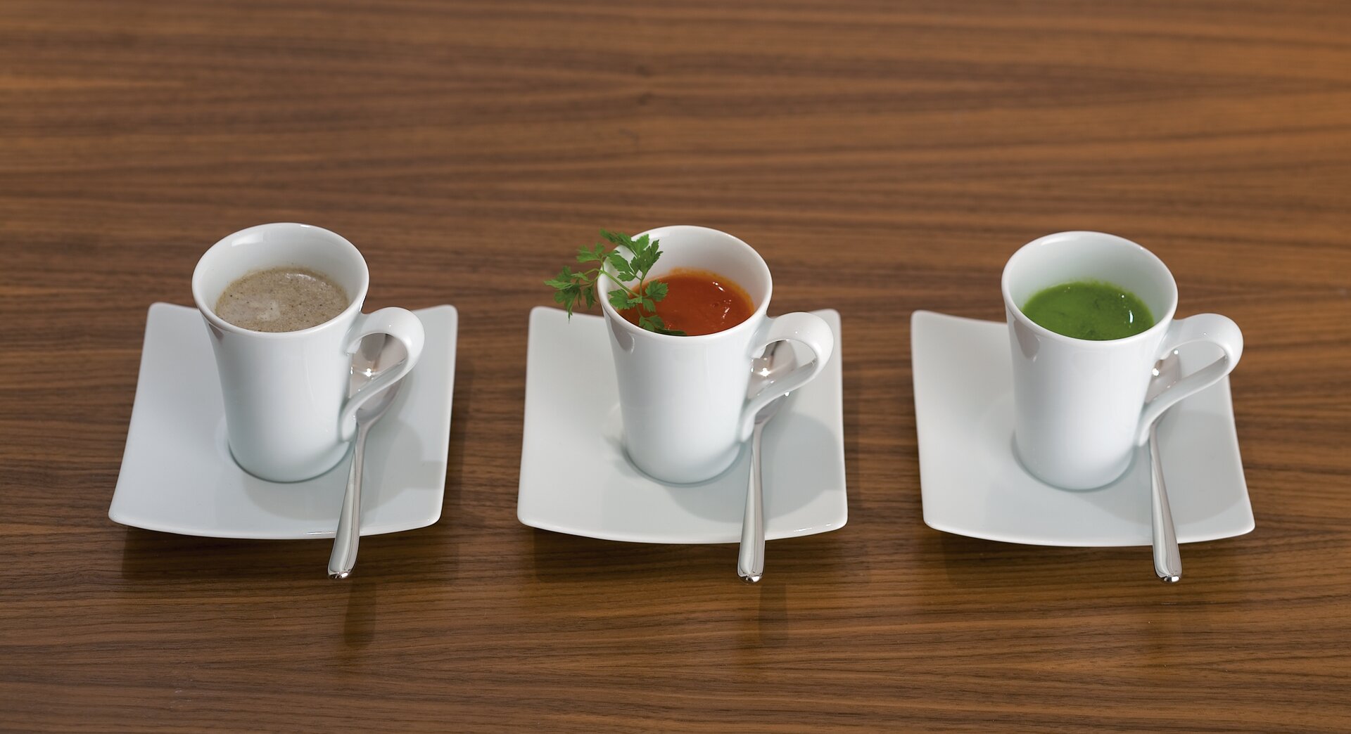 Klassische Eleganz – in einer klaren, zeitlosen Form. Der besondere Charme liegt in der Kombination aus runden und quadratischen Tellern und weich geschwungenen Hohlteilen. Ein anmutiger Purismus, der ganz unterschiedliche Ansprüche befriedigt.