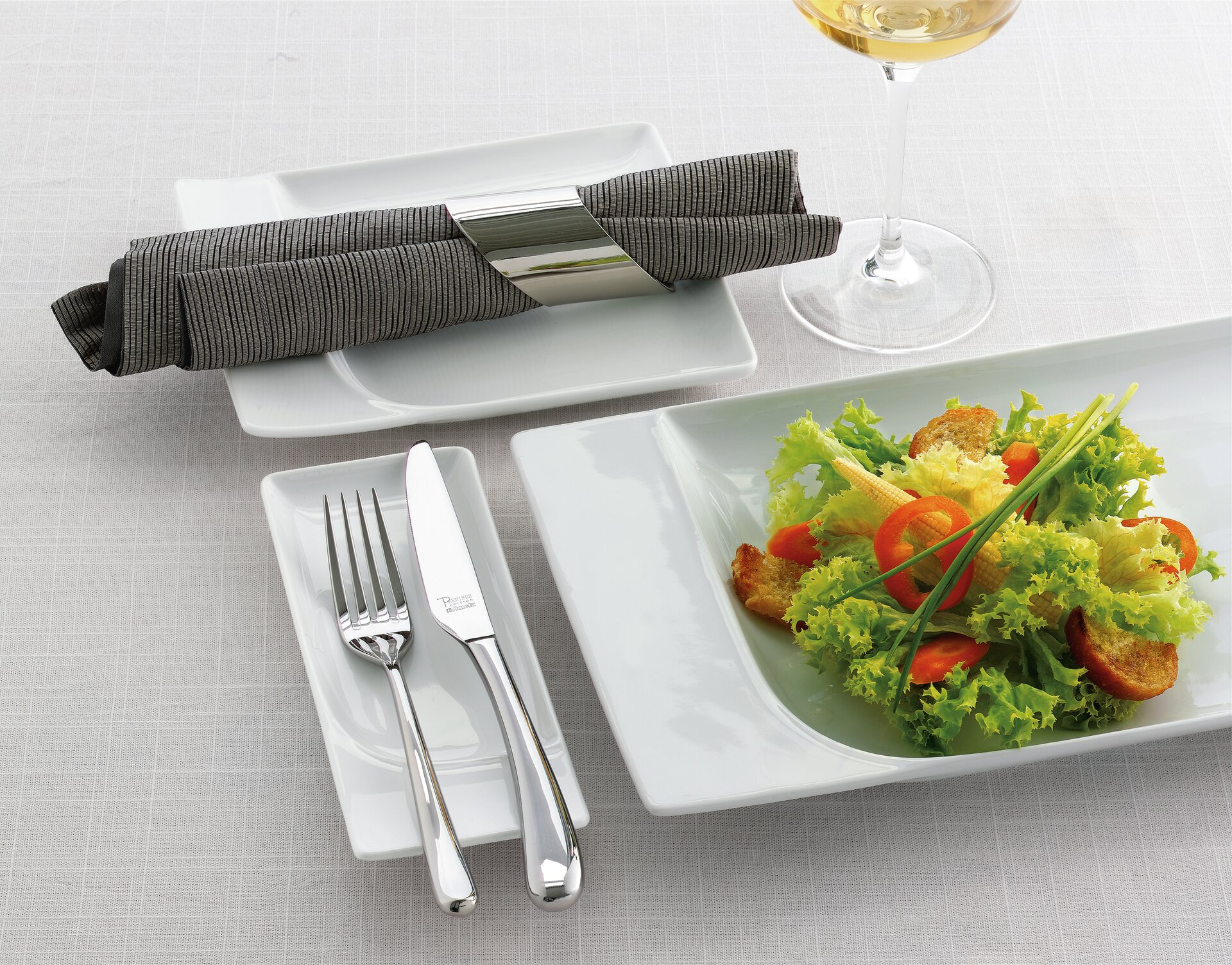 Klassische Eleganz – in einer klaren, zeitlosen Form. Der besondere Charme liegt in der Kombination aus runden und quadratischen Tellern und weich geschwungenen Hohlteilen. Ein anmutiger Purismus, der ganz unterschiedliche Ansprüche befriedigt.