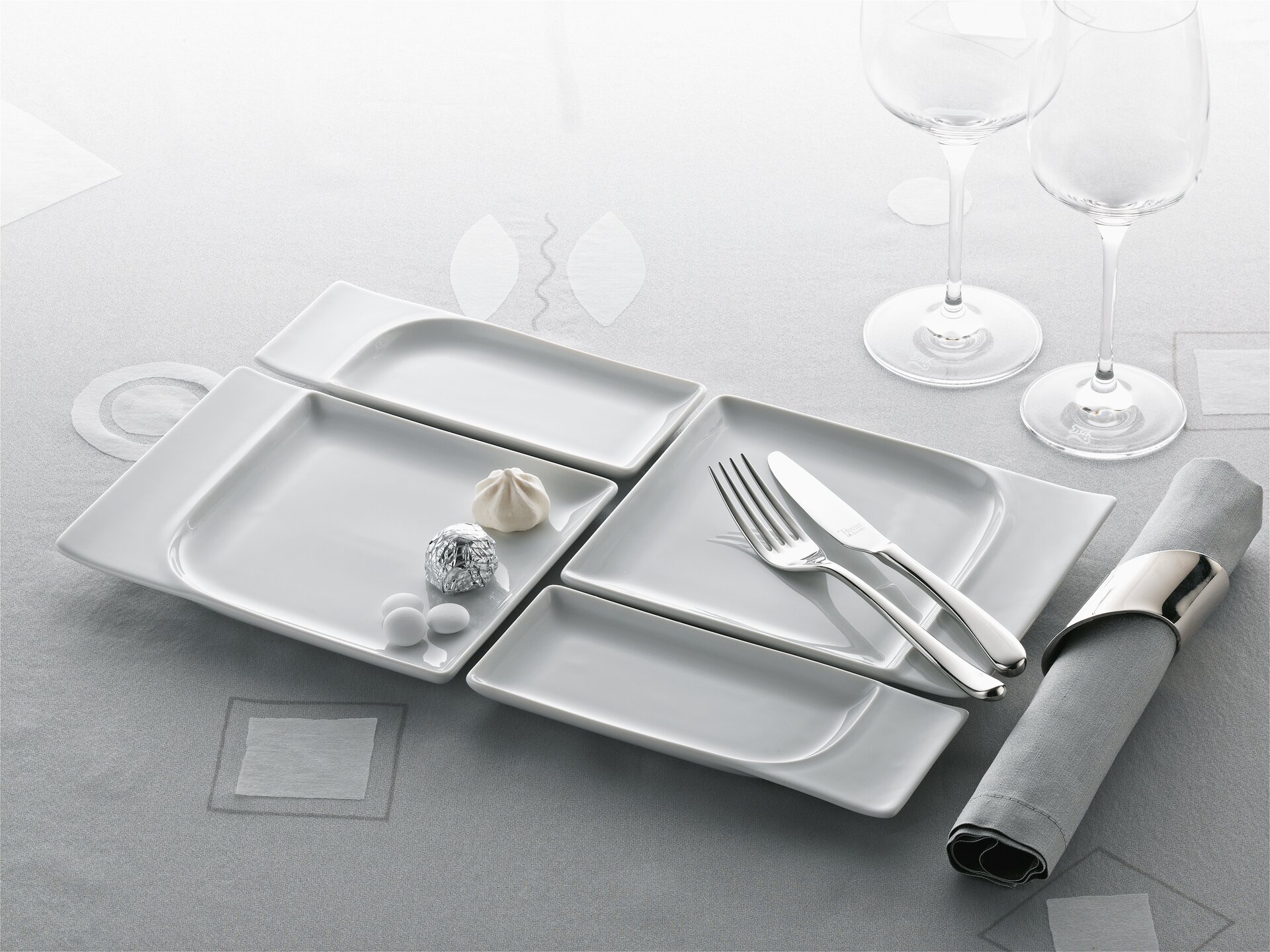 Klassische Eleganz – in einer klaren, zeitlosen Form. Der besondere Charme liegt in der Kombination aus runden und quadratischen Tellern und weich geschwungenen Hohlteilen. Ein anmutiger Purismus, der ganz unterschiedliche Ansprüche befriedigt.