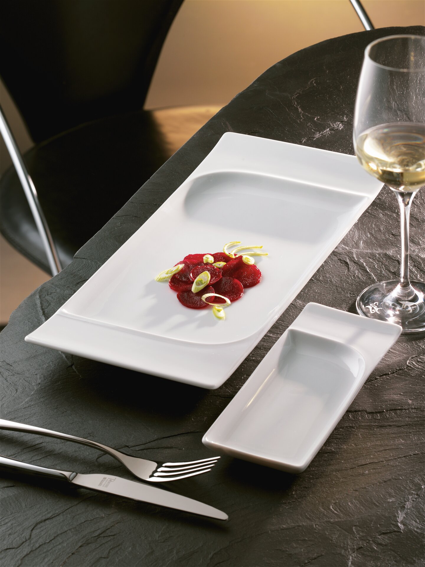 Klassische Eleganz – in einer klaren, zeitlosen Form. Der besondere Charme liegt in der Kombination aus runden und quadratischen Tellern und weich geschwungenen Hohlteilen. Ein anmutiger Purismus, der ganz unterschiedliche Ansprüche befriedigt.