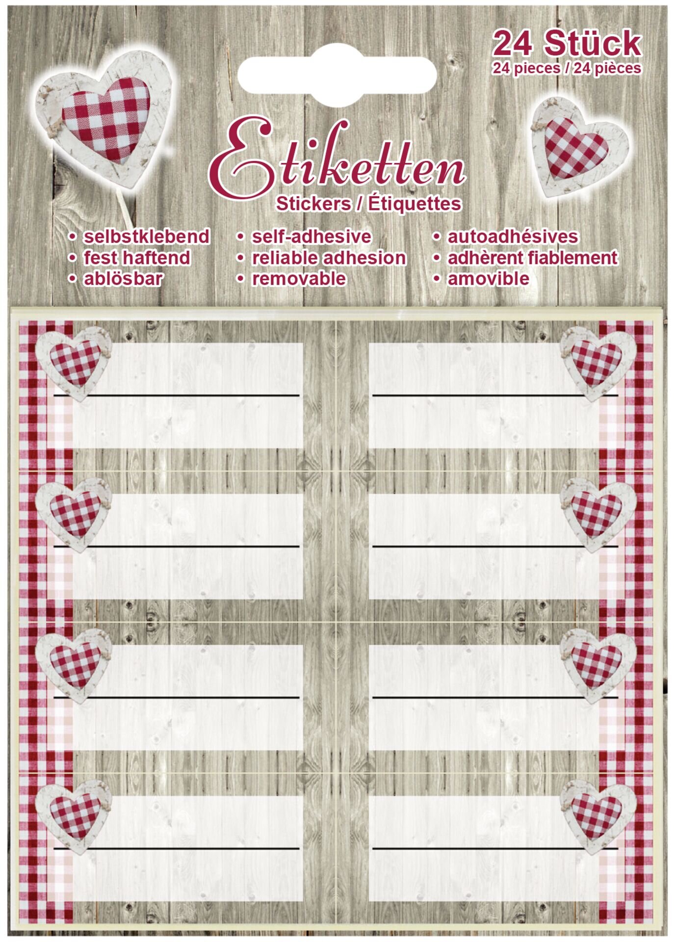 LxB in cm: 5,4x2,5 Dunkelrot/weiß kariert. 24er Pack.