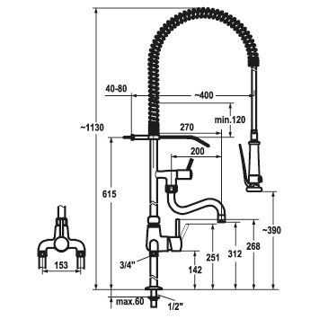 KWC Gastro-Hebelmischer mit Geschirrwaschbrause