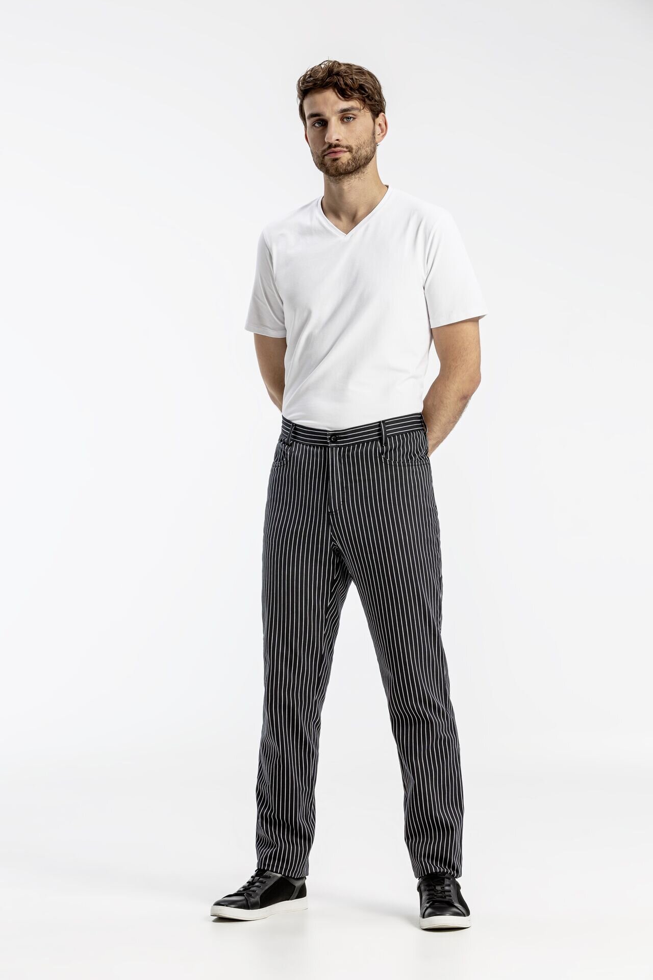 Herren-Hose Five-Pocket, regular fit, Gummibund hinten, 2 Pockettaschen, 2 Gesäßtaschen, Gürtelschlaufen, Schrittlänge 84 cm/ Gr. 50, 100% Baumwolle, 200g/ m², waschbar bei 95 °C.
