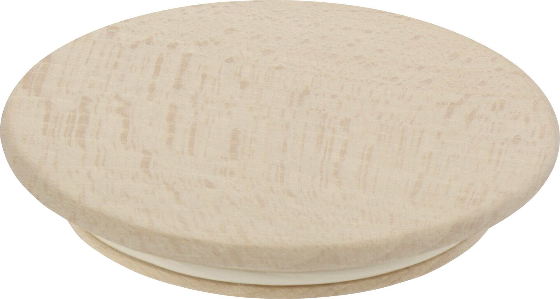 Buchenholz. Mit Silikonring. Nicht spülmaschinengeeignet. Passend zu allen Weck-Gläsern mit Ø 6, 8 bzw. 10 cm und einigen Karaffen. (Weitere Angaben auf Anfrage)