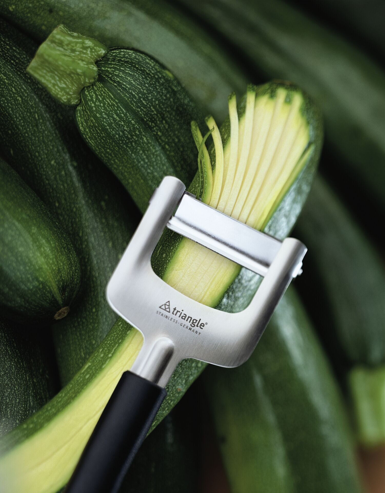 LxB in cm : 23x7 Edelstahl 18/10, PA glasfaserverstärkt, schneidet 3mm dünne Streifen. Spülmaschinengeeignet.