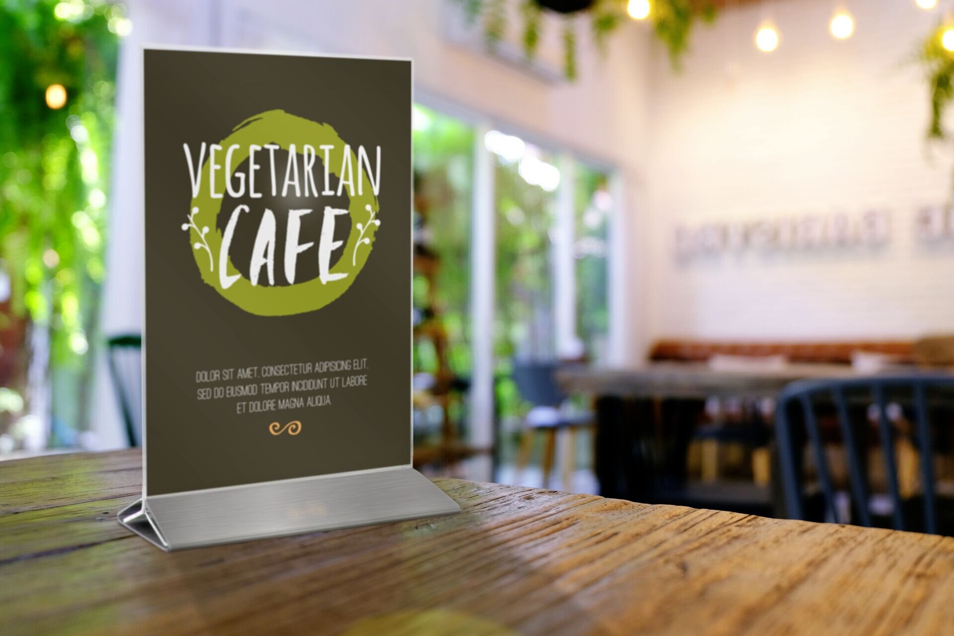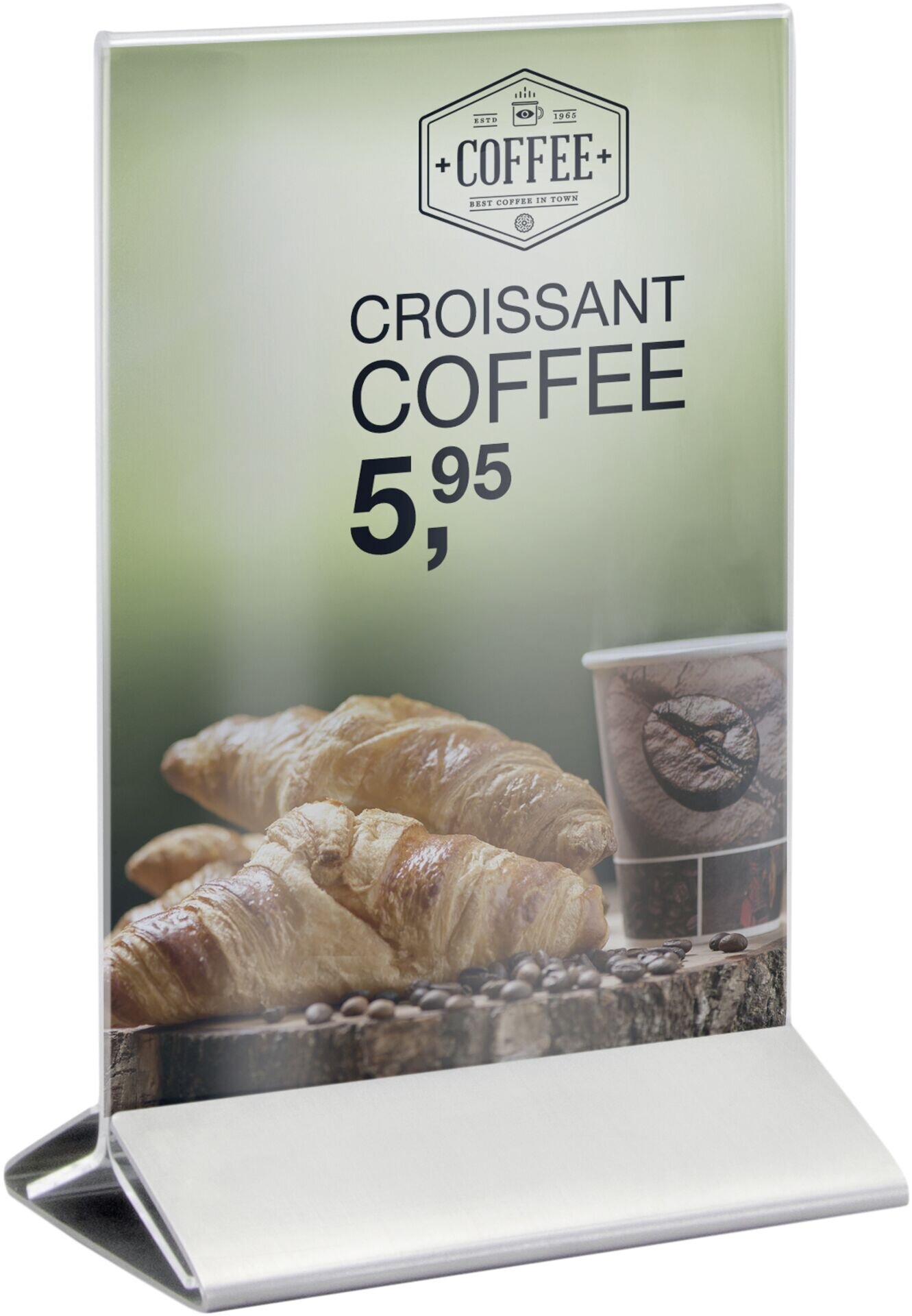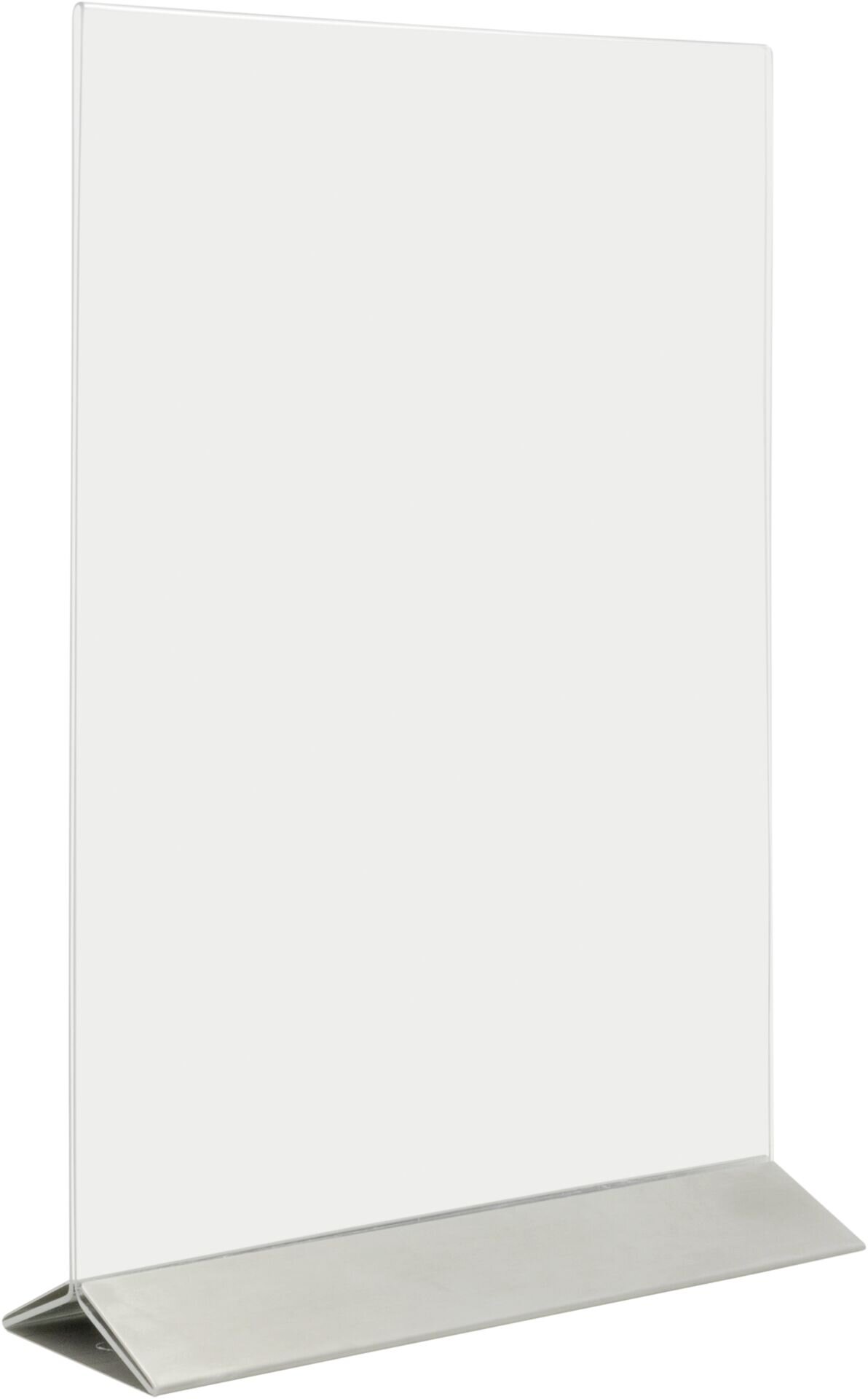 Acryl, transparent. Mit Edelstahlfuß. Für Papiereinschub. Ausführung: A4 BxHxT in cm: 20,7x33,2x7,4