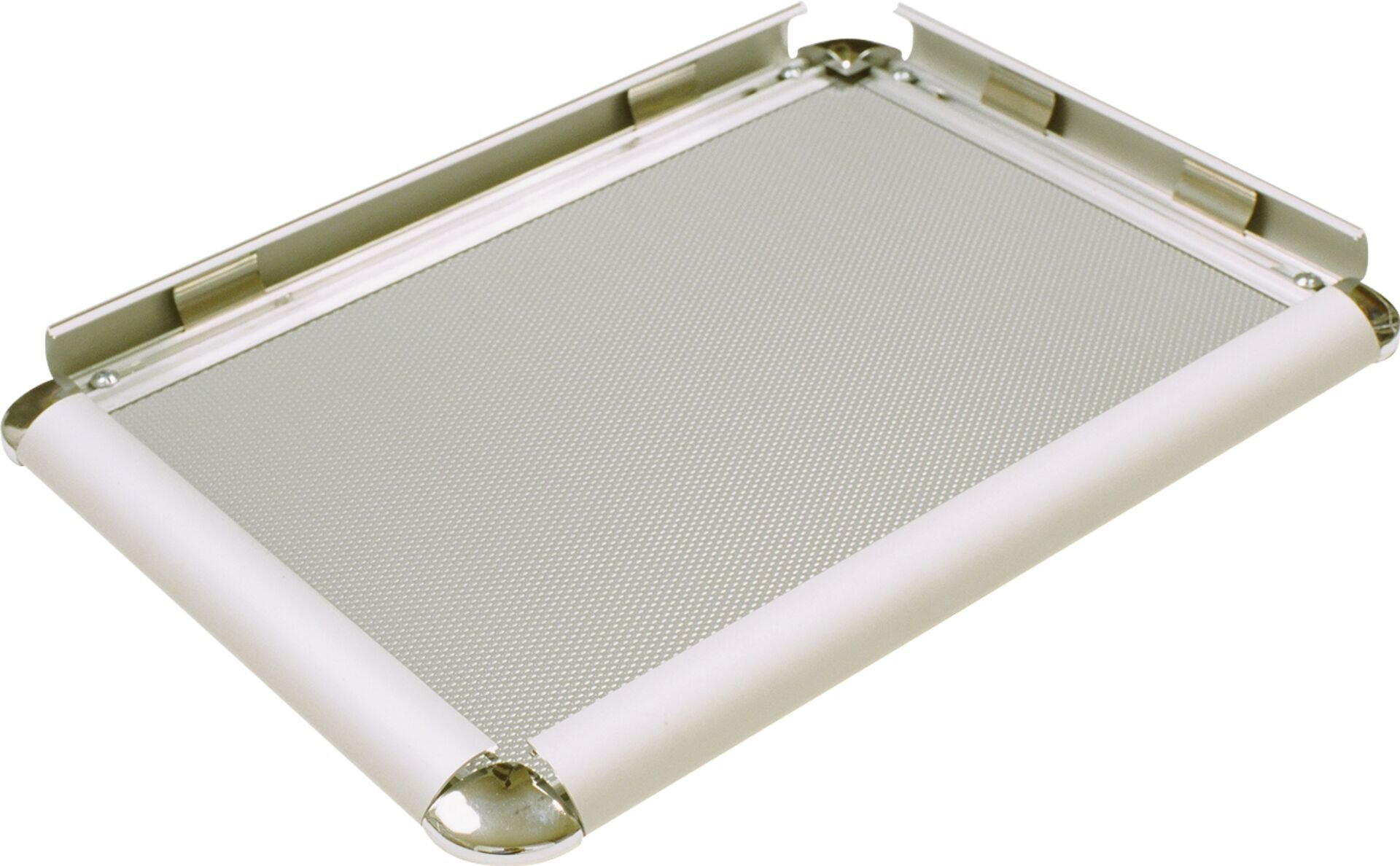 Außenrahmen einfach aufklappen, Plakat und Klarsichtabdeckfolie einlegen, zuklappen - fertig!