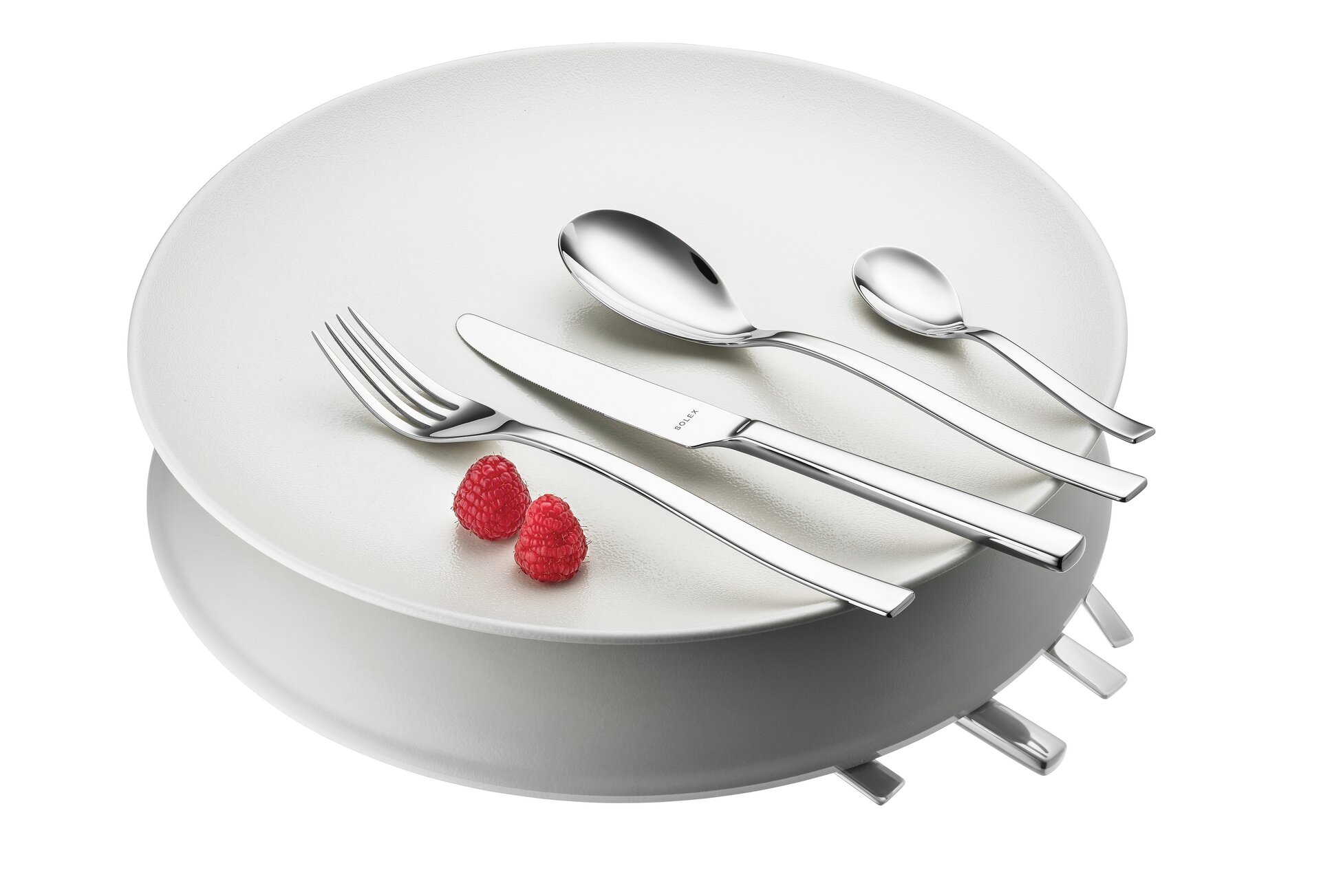 Die feine, leichte geschwungene Linienführung und das figurbetonte Vorderteil sowie die Gesamtgröße und Materialstärke vereinen sich zu einem Klassiker der modernen Besteckkultur mit ausgewogenen Proportionen, der auf jede stilvolle Tafel, auch zu großen Tellern passt.