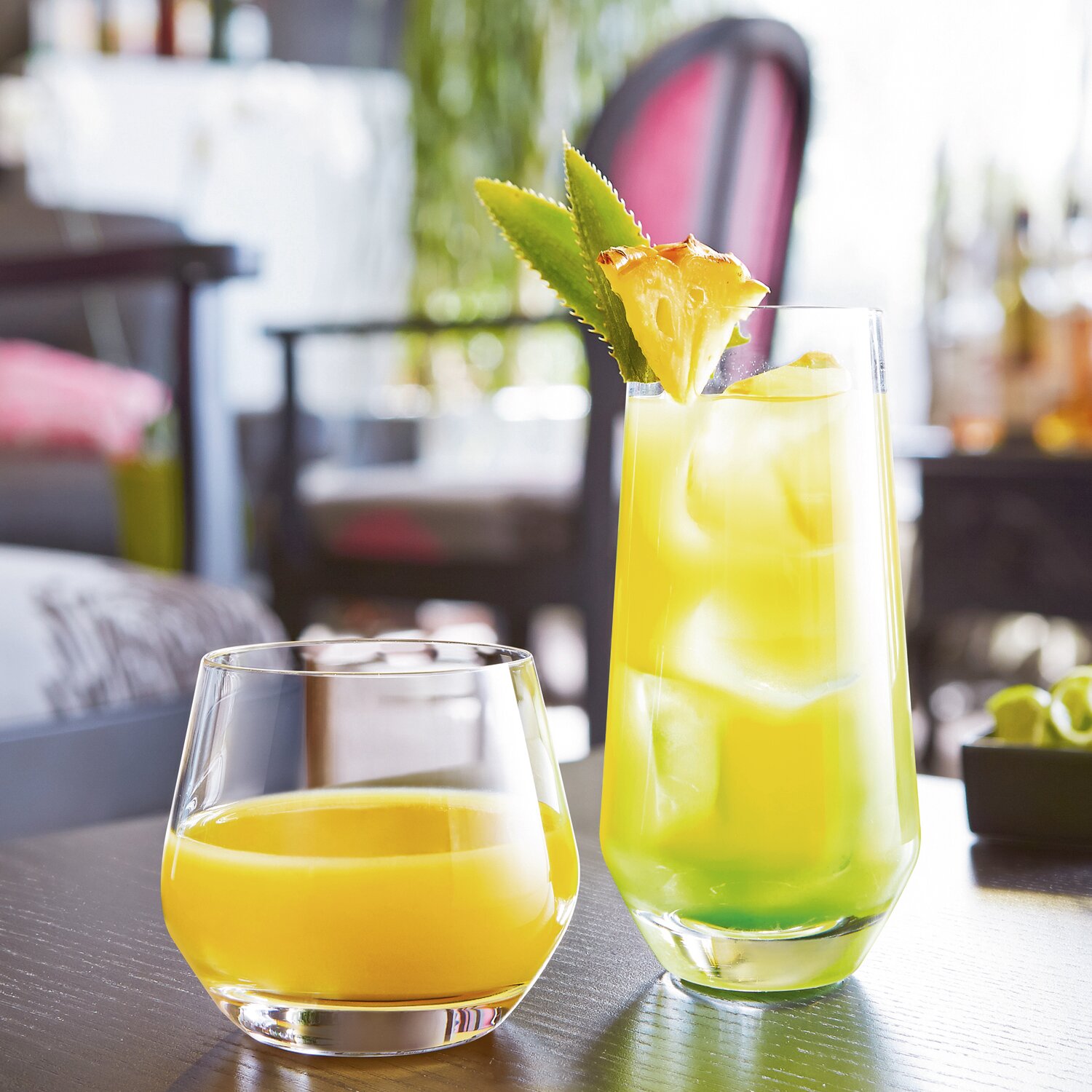Mit ihren polygonalen Formen passen die Tumbler der Kollektion Lima perfekt zu den kantigen, modernen Linien der Stielgläser Cabernet oder auch Sublym. Diese Gläser sind für trendige Restaurants und Bars bestimmt und verleihen jedem klassischen Ambiente frischen Pep.