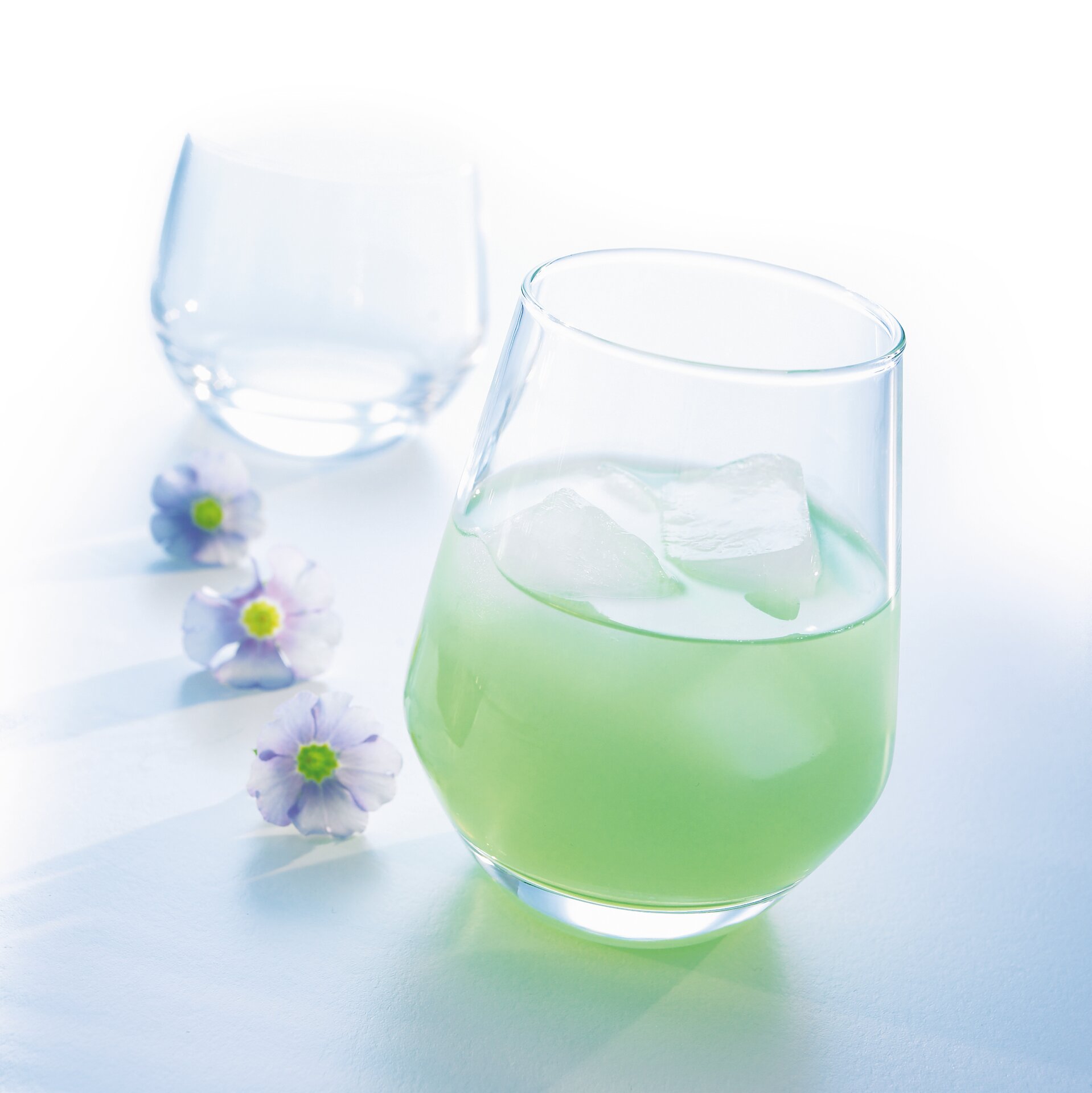 Gläser mit dickem Boden, auf dem das Licht mit seinen Reflexen spielt: