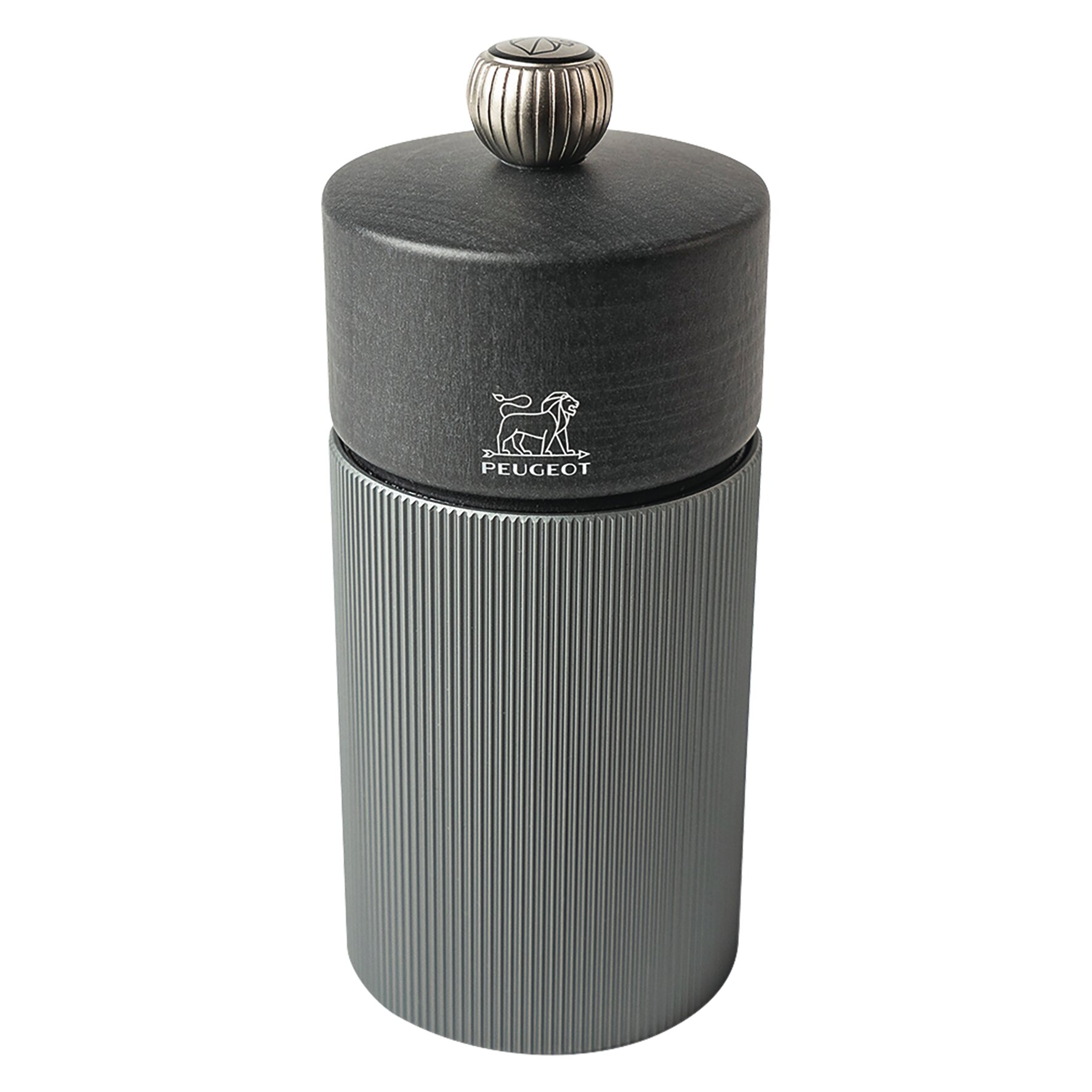 Die Rillen auf dem Körper der "Line Carbone" Pfeffermühle erzeugen einen Lichteffekt und spielen mit metallischen Reflexen, die den hölzernen Mühlenkopf in Szene setzen. Diese ideal für den Einsatz zu Tisch geeignete Mühle bietet 2-fache Kombinationsmöglichkeiten in einem Duo aus Salz- und Pfeffermühle: Entweder harmonisch mit der Salzmühle "Line Carbone" in selbiger Ausführung oder kontrastreich als zweifarbiges Duo mit der "Line Aluminium". - H 120 mm, perfekt für den Einsatz zu Tisch.