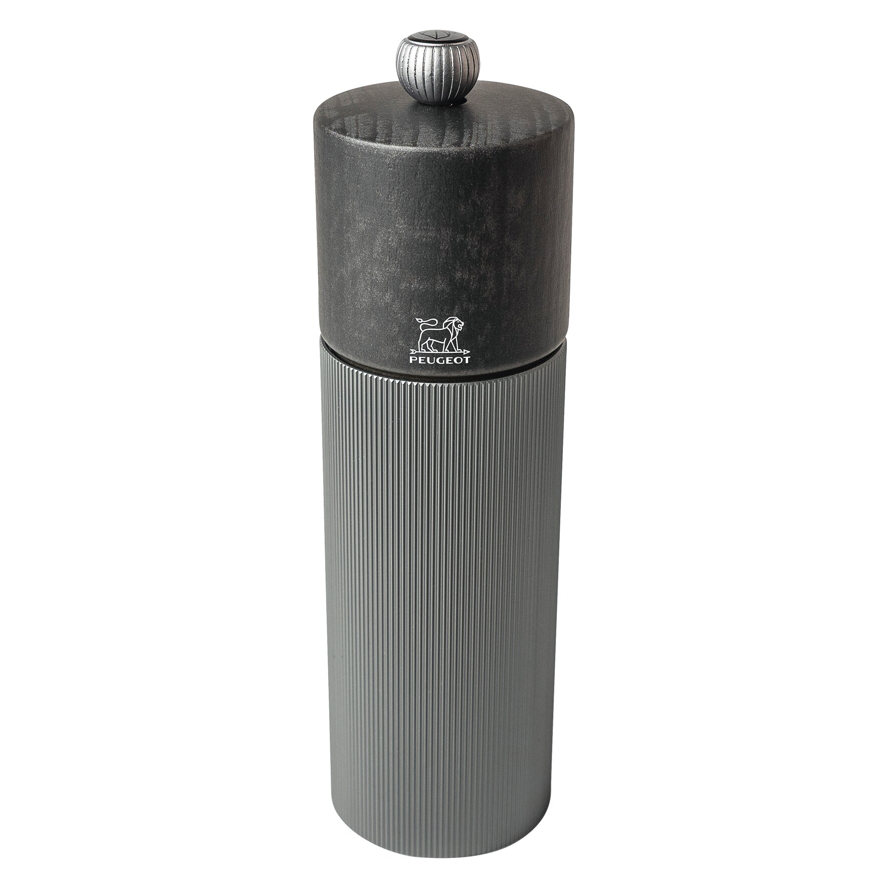 Dieser schillernde Farbton des Aluminiumkörpers passt perfekt zu der dezent metallisch schimmernden Graphit des Oberteils aus (PEFC-zertifiziertem) Holz. Die in Frankreich hergestellte Mühle steht für das Know-how von Peugeot: Das speziell für Pfeffer konzipierte Stahlmahlwerk, mit einer 25-jähriger Garantie und der Drehknopf ermöglichen eine einfache und effektive Mahlgradeinstellung (je stärker er angezogen ist, desto feiner der Pfeffer). Die ideal für den Einsatz auf dem Tisch geeignete Mühle bietet zwei Möglichkeiten der Kombination in einem Salz- und Pfefferstreuer-Duo: entweder harmonisch mit der Salzmühle Line Carbon in gleicher Ausführung oder kontrastreich als zweifarbiges Duo mit der Line Aluminium.
