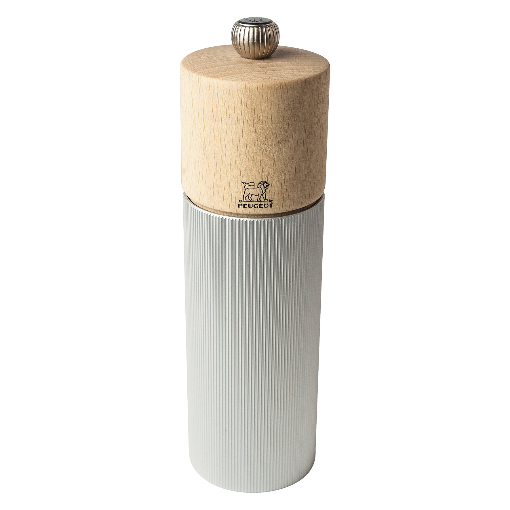 Die 180 mm große Pfeffermühle Line mit ihrem sehr zeitgemäßen Design wird in Frankreich hergestellt. Sie ist mit dem berühmten Mahlwerk von Peugeot ausgestattet, auf das eine 25-jährige Garantie gewährt wird. Der mit einem Löwen markierte Knopf, am Kopf der Mühle, ermöglicht eine einfache Einstellung des Mahlgrades. Ideal für die Verwendung als Pfeffer- und Salzduo in zwei Kombinationsmöglichkeiten: entweder im Total-Look mit der Mühle Line im gleichen Finish oder zusammen mit der 120 mm großen Salzmühle Line, um Salz und Pfeffer leicht auseinanderhalten zu können.