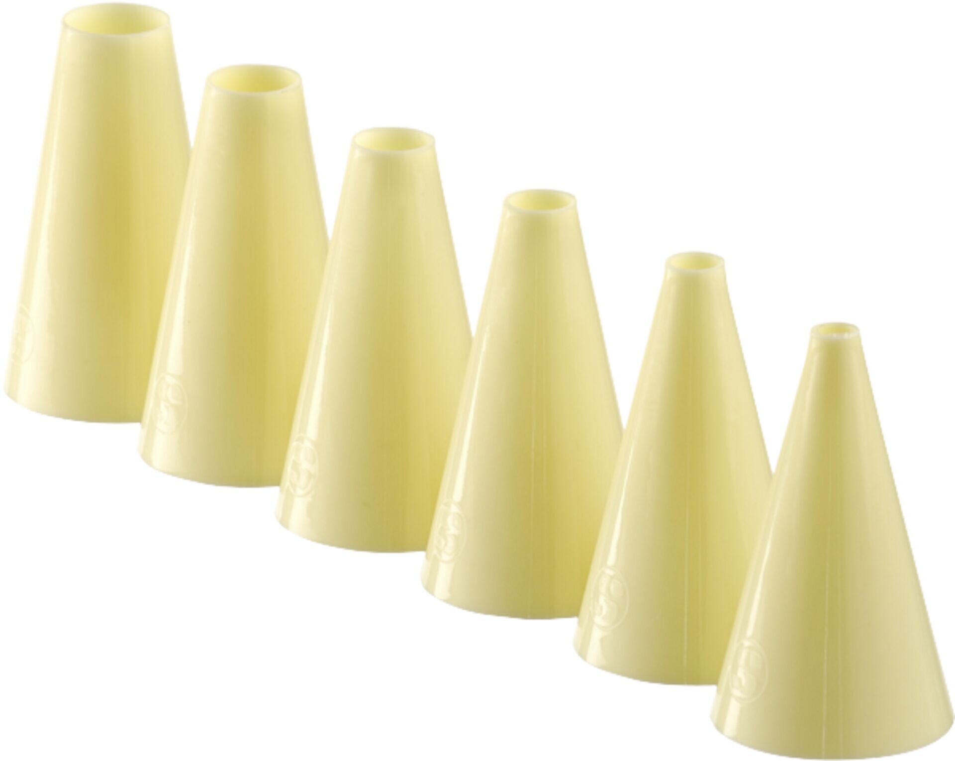 Ø/Maße in mm: 5,7 9,11 13,5 6-teilig. PP. Elfenbeinfarben. Höhe: 6 cm. Set bestehend aus 6 verschienenen Tüllen.