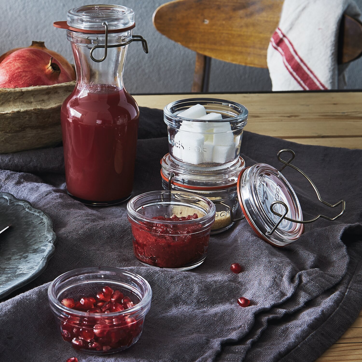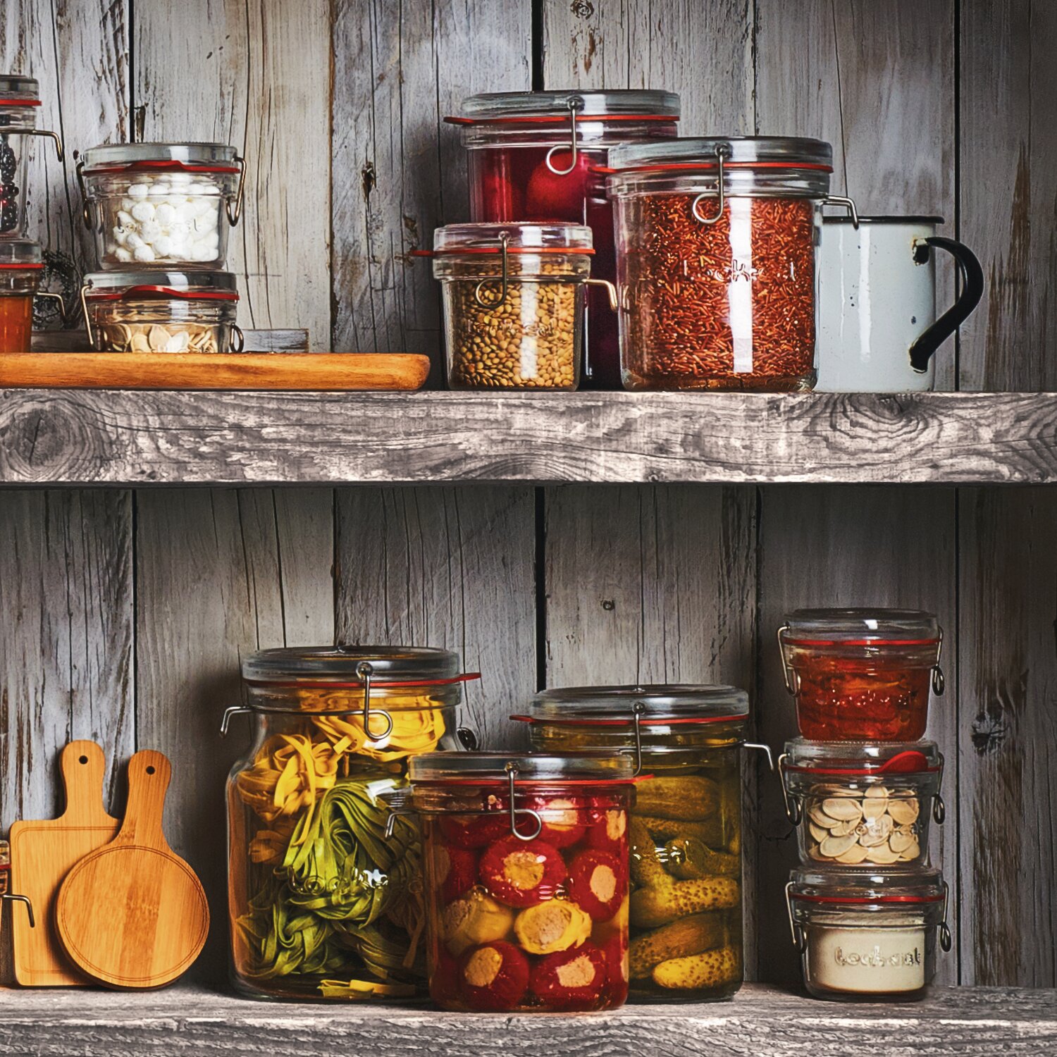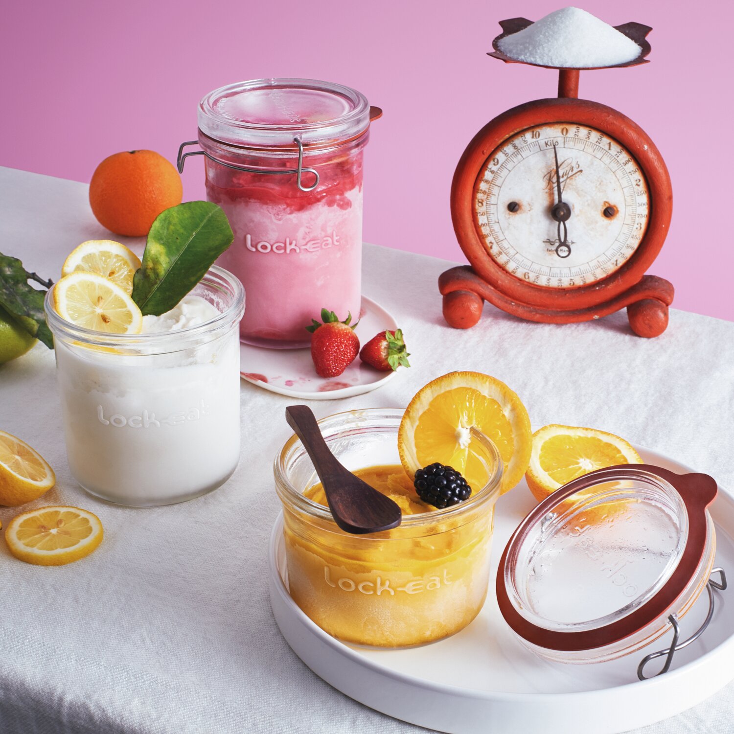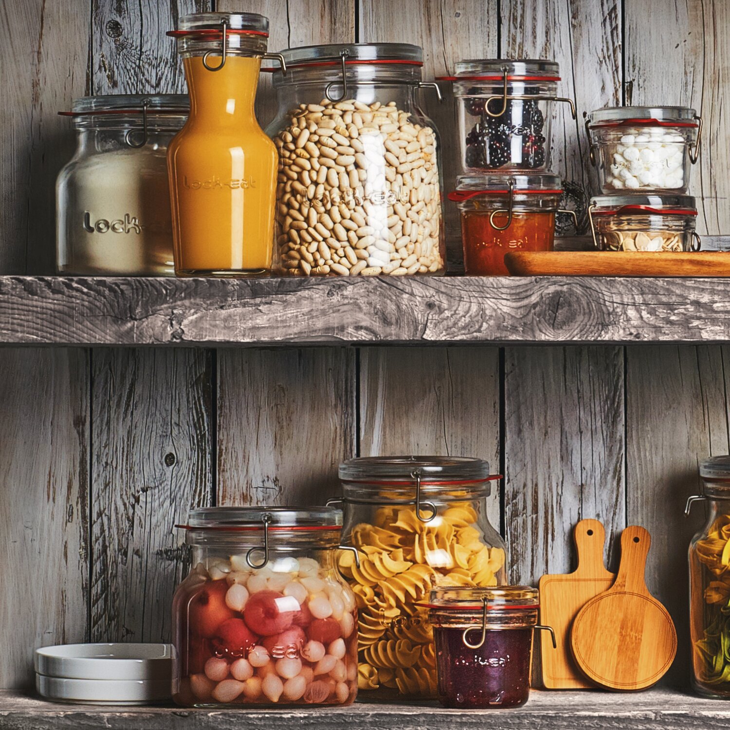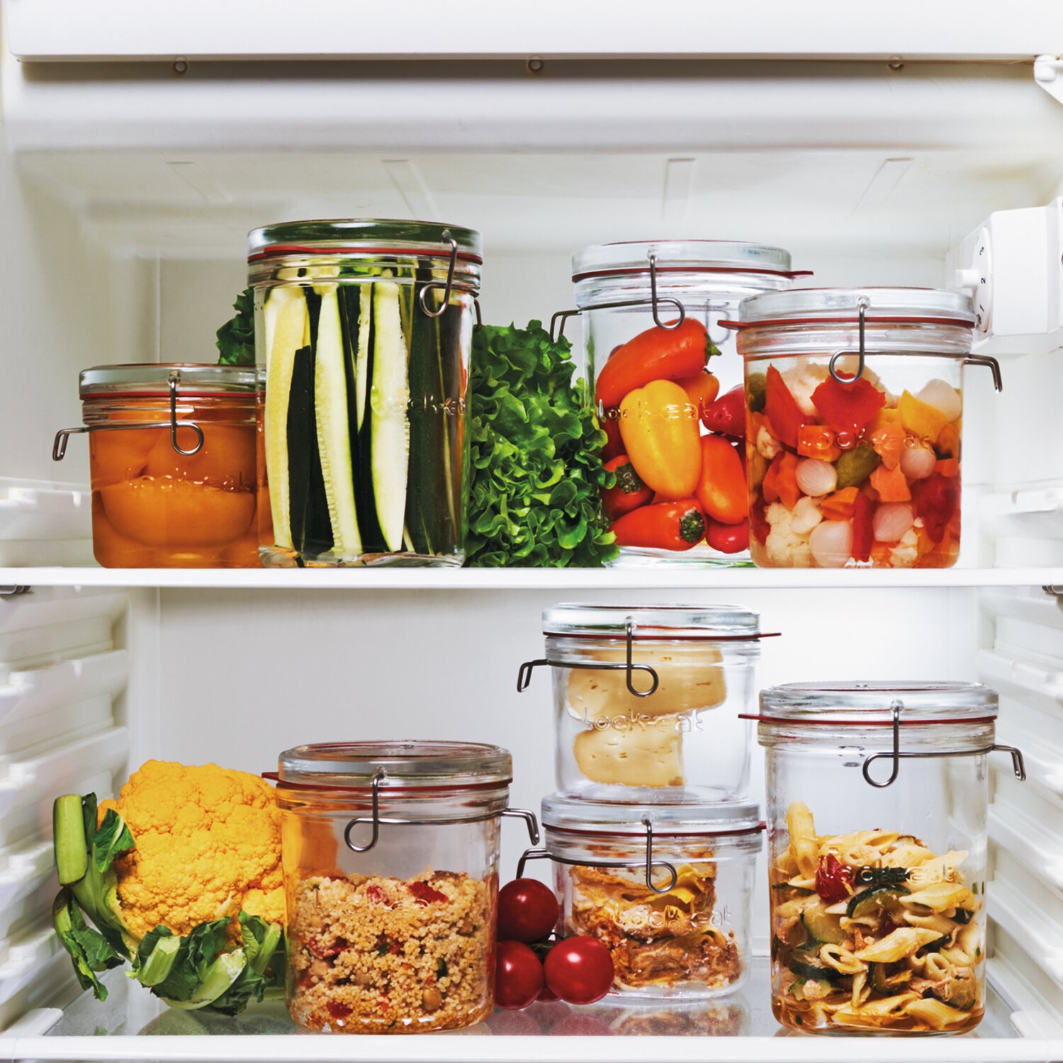 Die Lock-Eat Kollektion wurde für die Lebensmittelaufbewahrung mit verschiedenen Aufbewahrungstechniken und für zahllose Rezepte entwickelt. Obst, Gemüse, Konfitüren und Gelees, Sirups und Fruchtsäfte und vieles mehr können aufbewahrt werden. Die Behälter und Karaffen von Lock-Eat eignen sich für: