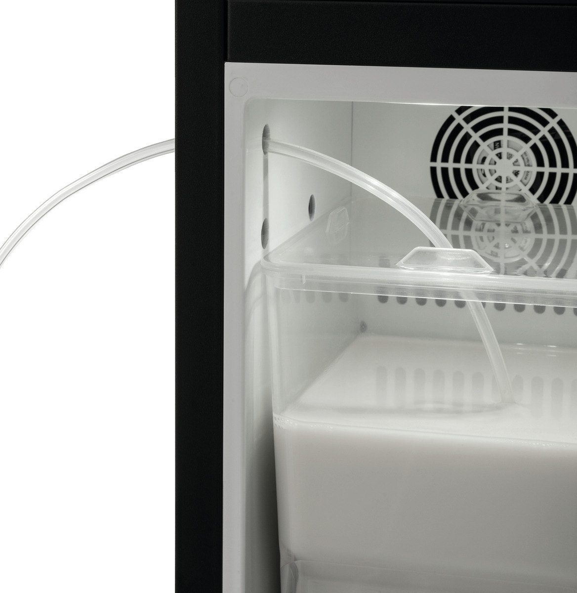 Ob für Cappuccino, Café au lait oder Latte Macchiato – Der praktische Milchkühlschrank bietet mit seinen seitlichen Schlauchöffnungen direkten Zugriff auf gekühlte Milch. Die Milch wird hy gienisch kühl gelagert und kann bei Bedarf über den Milchschlauch des Vollautomaten direkt für die Kaffeezubereitung gezogen werden.