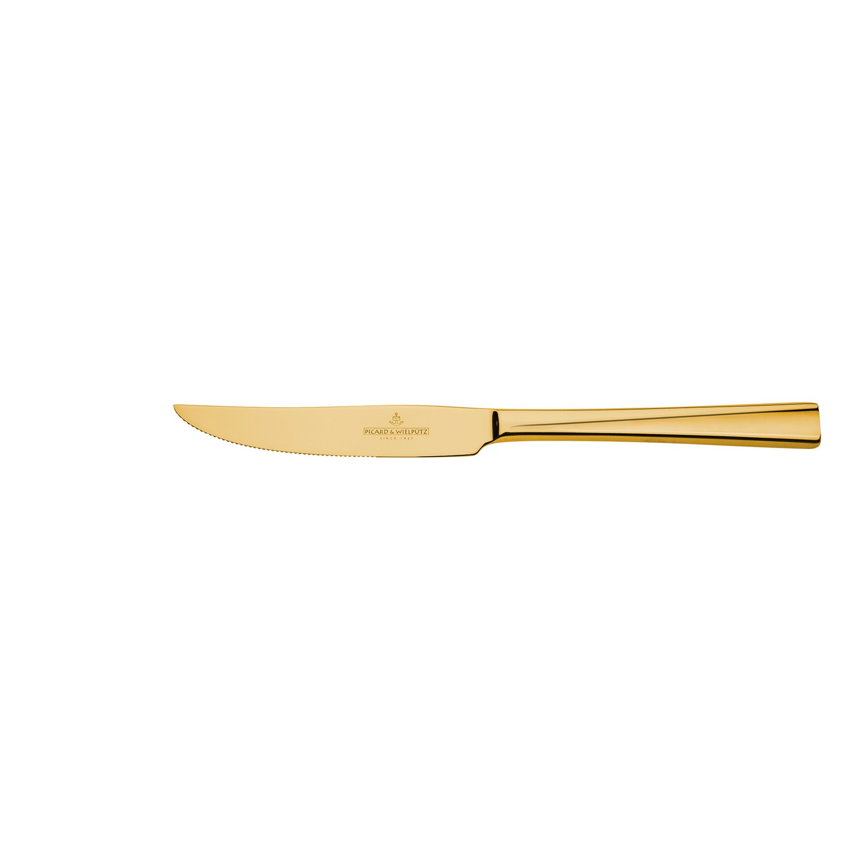 Unser PVD beschichtetes Besteck Monterey in der Farbe GOLD hat eine Materialstärke von 4 mm und vermittelt dadurch eine enorme Wertigkeit, ohne dabei klobig oder zu schwer zu wirken. Die lange Messerklinge und Zinken der Gabel stehen für ein modernes Design. Am Griff scheint der Stahl in sich verwunden und bietet ein Highlight mit der schräg verlaufenden Linie am Griff. Durch die besondere Form liegt das Besteck gut in der Hand und ist fein ausbalanciert.