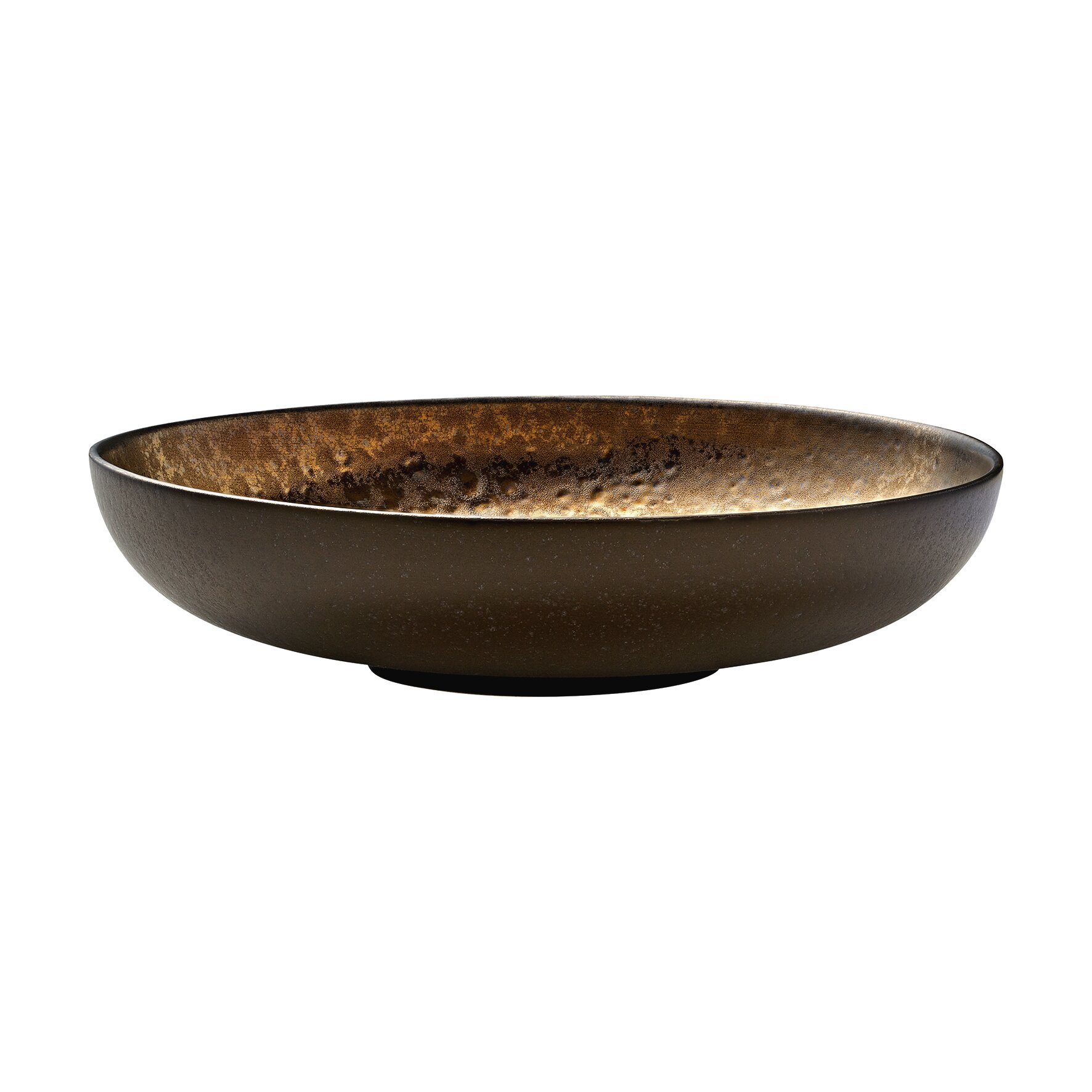 Dunkel und edel präsentiert der große Pastateller Nivo Metallic deine Speisen und eignet sich bestens für ein Spiel mit dem Kontrast farbenfroher Food-Kreationen. Hier präsentierst du deine Pasta, Vorspeise oder dein Signatur-Dish auf einem optischen Highlight in Dunkelbraun mit auffallendem Metallic-Schimmer und gehämmerter Speisefläche. Der tiefe coupe Teller mit 26cm Durchmesser ist aus erstklassiger Stoneware gefertigt und in Fine Dining Konzepten ebenso zuhause wie in der modernen Konzeptgastronomie. Menüteller für moderne Foodkreationen aus erstklassiger Stoneware auffalendes Metallic-Design optisches Highlight auf dem Menütisch
