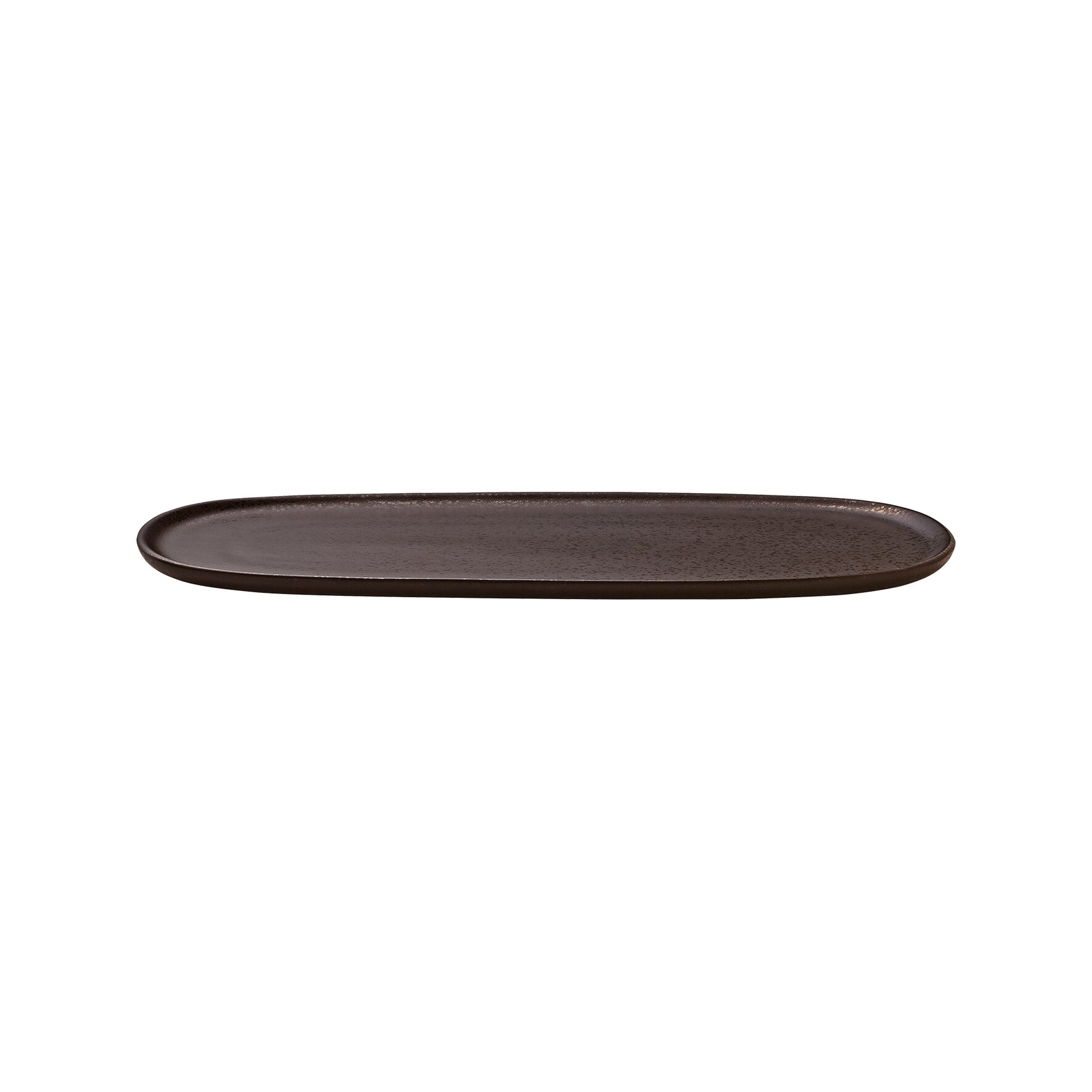 Ihre dunkle Farbe sowie die braun-gold-gesprenkelte Speisefläche machen die Nivo Mokka Platte flach 30cm zu einem Hingucker auf deinem Restauranttisch. Zeige deine Kreationen auf dieser extravaganten ovalen Platte und beeindrucke mit deinem Stil-Gefühl. moderne Speiseplatte in Gold-Braun robuste Stoneware