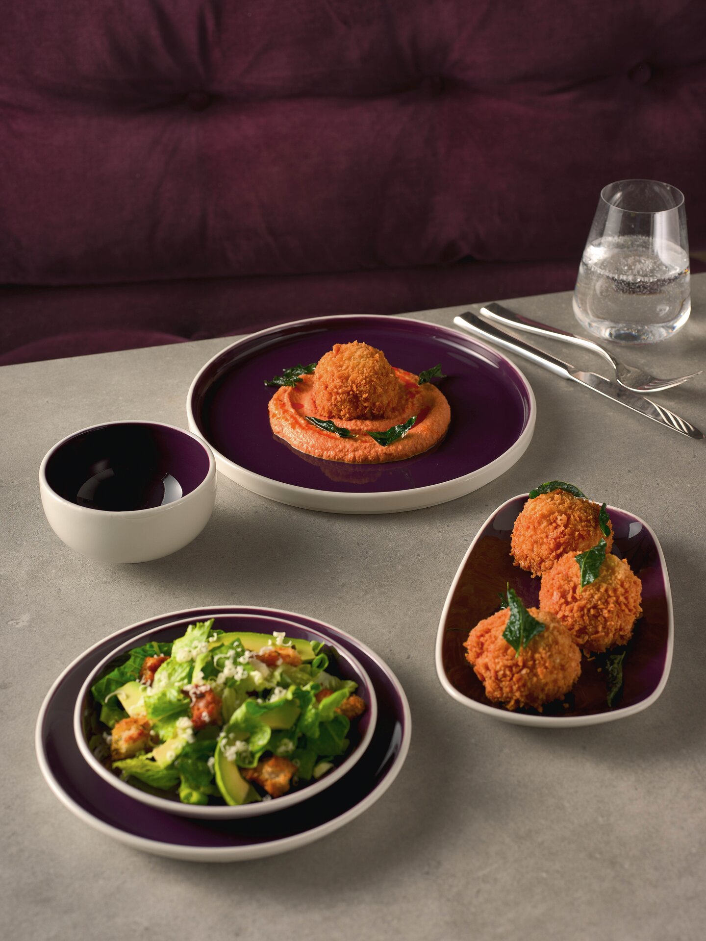 Nyx bietet ein kontrastreiches schwarzes Farbfeld, das die Farbtöne der vom Küchenchef kreierten Speisen verstärkt. Dies zieht den Blick des Gastes auf sich und verleiht der Präsentation Dynamik und Dramatik. Das randlose Profil bietet dem Küchenchef eine optimale Servierfläche, auf der er seine Fähigkeiten und seine Kreativität optimal zur Geltung bringt.