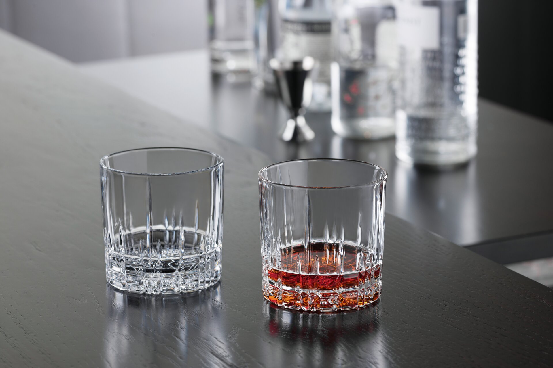 Von der Optik über das Gewicht in der Hand bis zum Klang der Gläser werden alle Sinne angesprochen. So zeigen die Gläser dank speziellem Schliffdekor eine einmalige Lichtbrechung und Brillanz. Gleichzeitig erfüllen die Bargläser alle Anforderungen einer modernen Bar. Sie sind in Größe und Gewicht perfekt ausbalanciert und passen zum Vorkühlen in handelsübliche Froster.