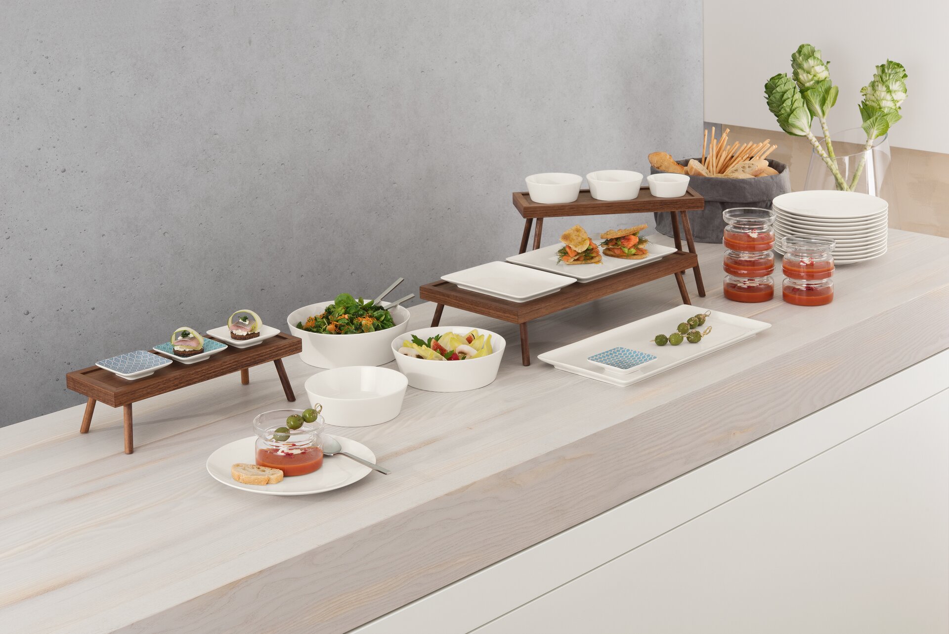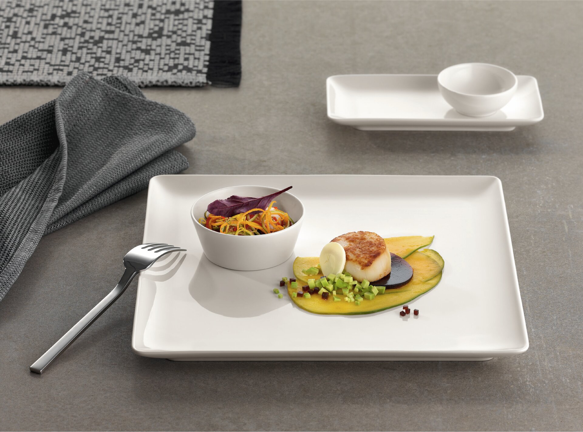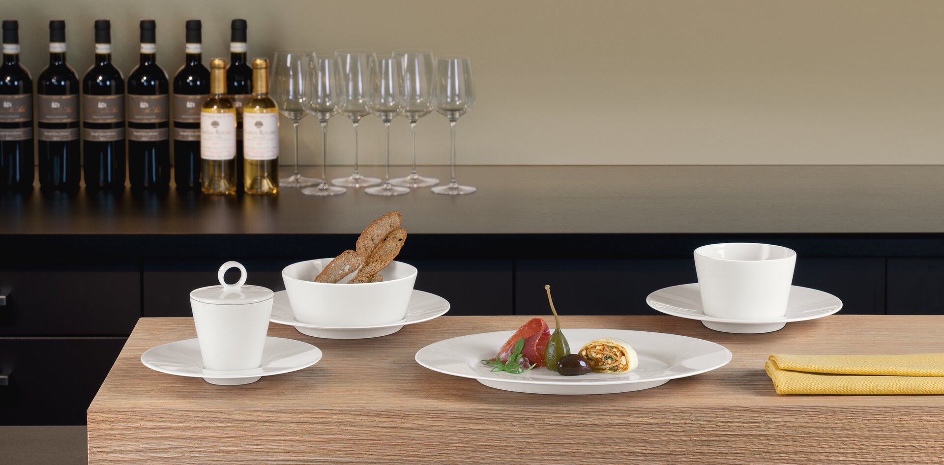 Beim eleganten Gourmet-Dinner zeigt sich, wie hochwertig und variantenreich sich kulinarische Ideen mit Purity präsentieren lassen. Runde Teller, ovale Platten und Schalen in unterschiedlichen Ausführungen sind vielseitig kombinierbar und fügen sich stets zu reizvollen neuen Ensembles zusammen. Ein besonderes Highlight sind die ästhetisch geschwungenen Saucieren. Aparte Deckel laden dazu ein, kleine Köstlichkeiten zu entdecken.