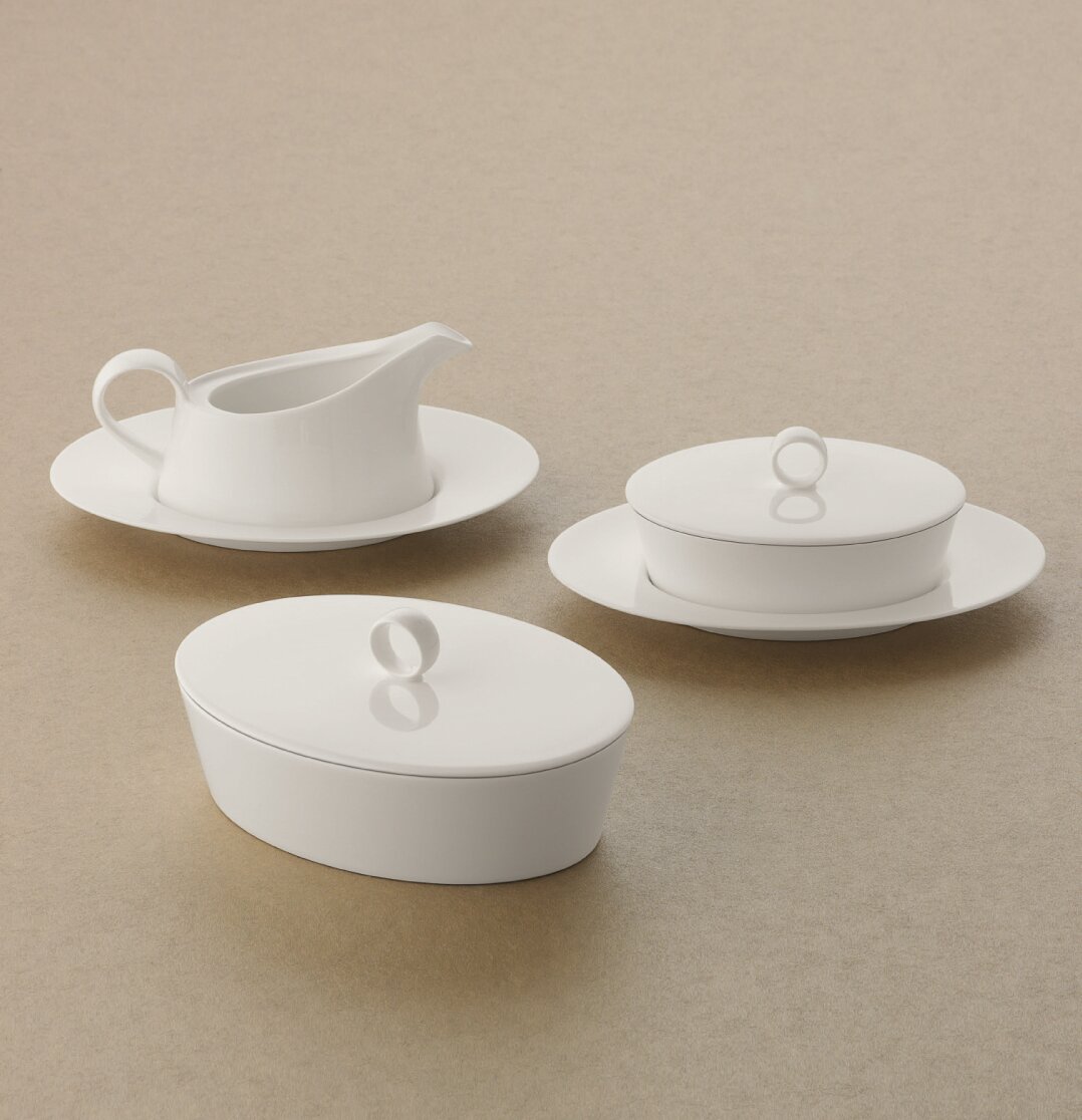 Beim eleganten Gourmet-Dinner zeigt sich, wie hochwertig und variantenreich sich kulinarische Ideen mit Purity präsentieren lassen. Runde Teller, ovale Platten und Schalen in unterschiedlichen Ausführungen sind vielseitig kombinierbar und fügen sich stets zu reizvollen neuen Ensembles zusammen. Ein besonderes Highlight sind die ästhetisch geschwungenen Saucieren. Aparte Deckel laden dazu ein, kleine Köstlichkeiten zu entdecken.