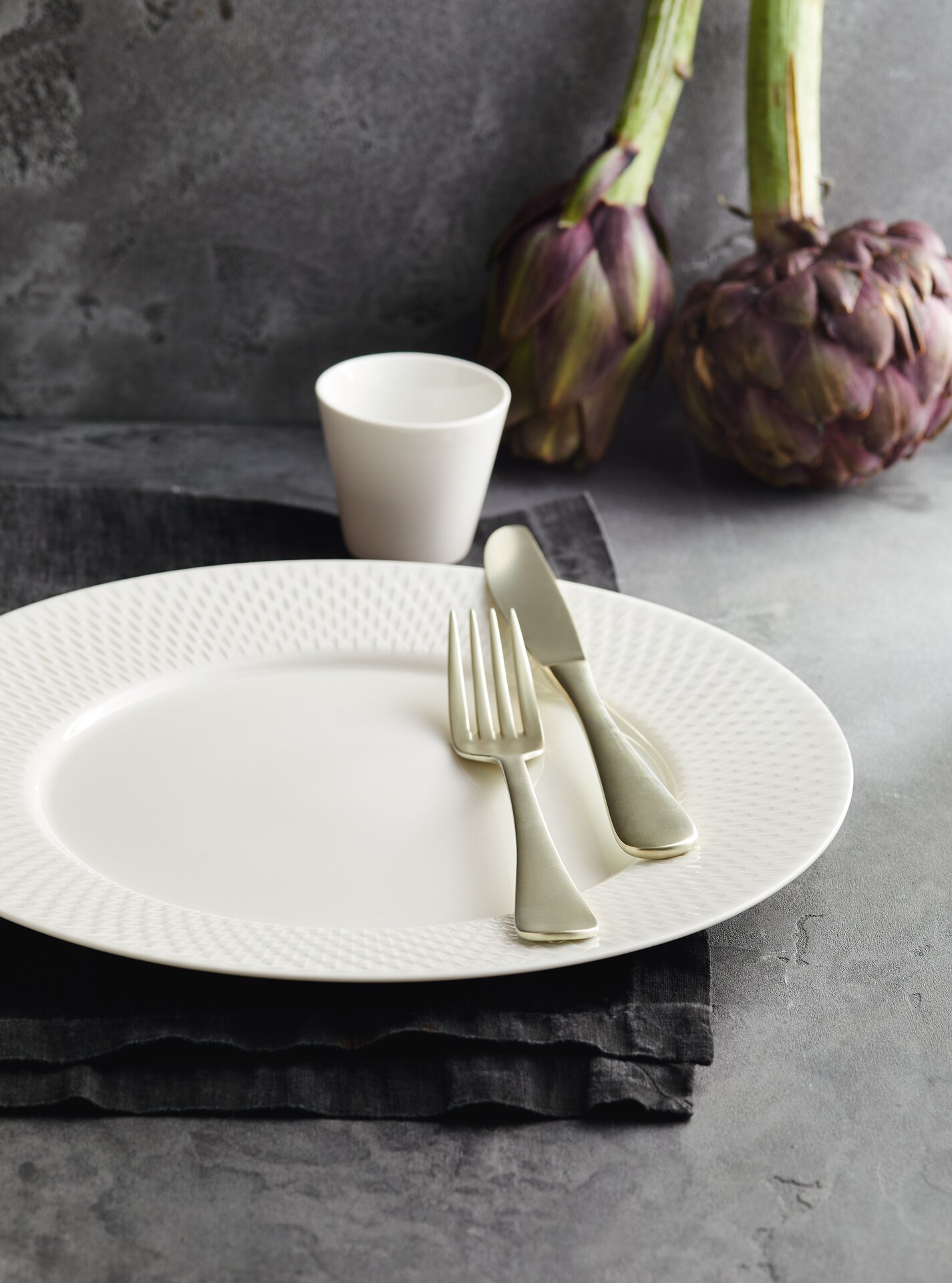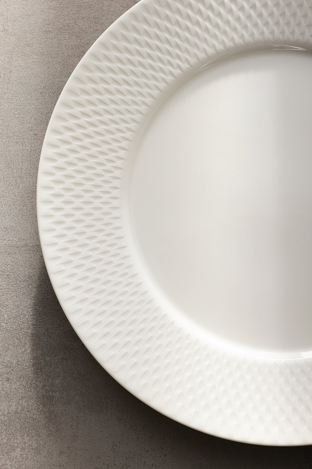 Die elegante Kollektion PURITY aus NOBLE CHINA wird mit einem grafischen, facettenschliffartigen Relief auf der Fahne versehen. Es entsteht ein spannendes Licht-und Schattenspiel: das Relief reflektiert bei jedem Drehen das Licht anders. Dabei funkelt das Relief wie ein Diamant.