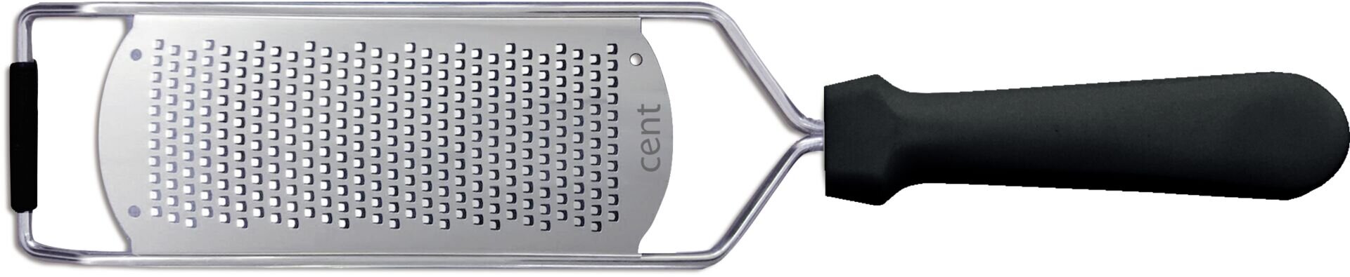 Reibe Edelstahl, schwarzer Kunststoffgriff, oval geformt, 31,5x6,5 cm, Spülmaschinengeeignet, Reinigung per Hand empfohlen. Ausführung: Fein