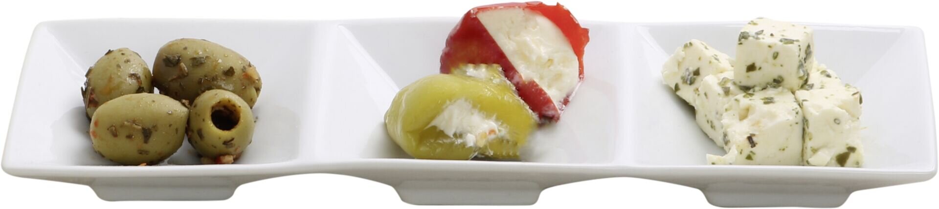 Porzellan, weiß. Feuerfest bis 250° C. Mikrowellenfest. Spülmaschinengeeignet. Inhalt strichvoll in ml je Feld: 50.