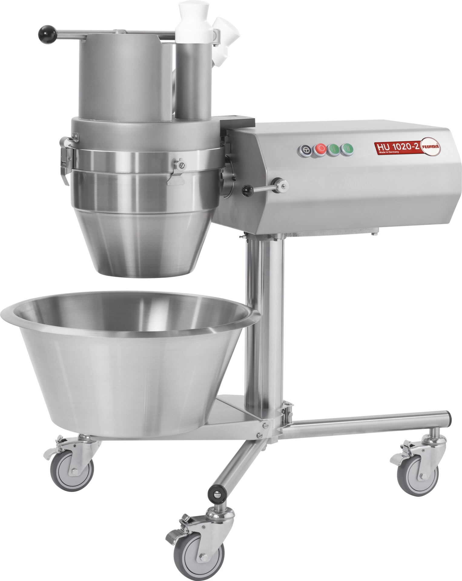 Für den geführten Schnitt, insbesondere länglicher und runder Produkte erforderlich. 2 Rundrohre für Parallel- und Schrägschnitt sowie das XXL-Krautrohr mit geschalteter Drückeinrichtung für hohe Bedienersicherheit ermöglichen vielfältige Anwendungen.