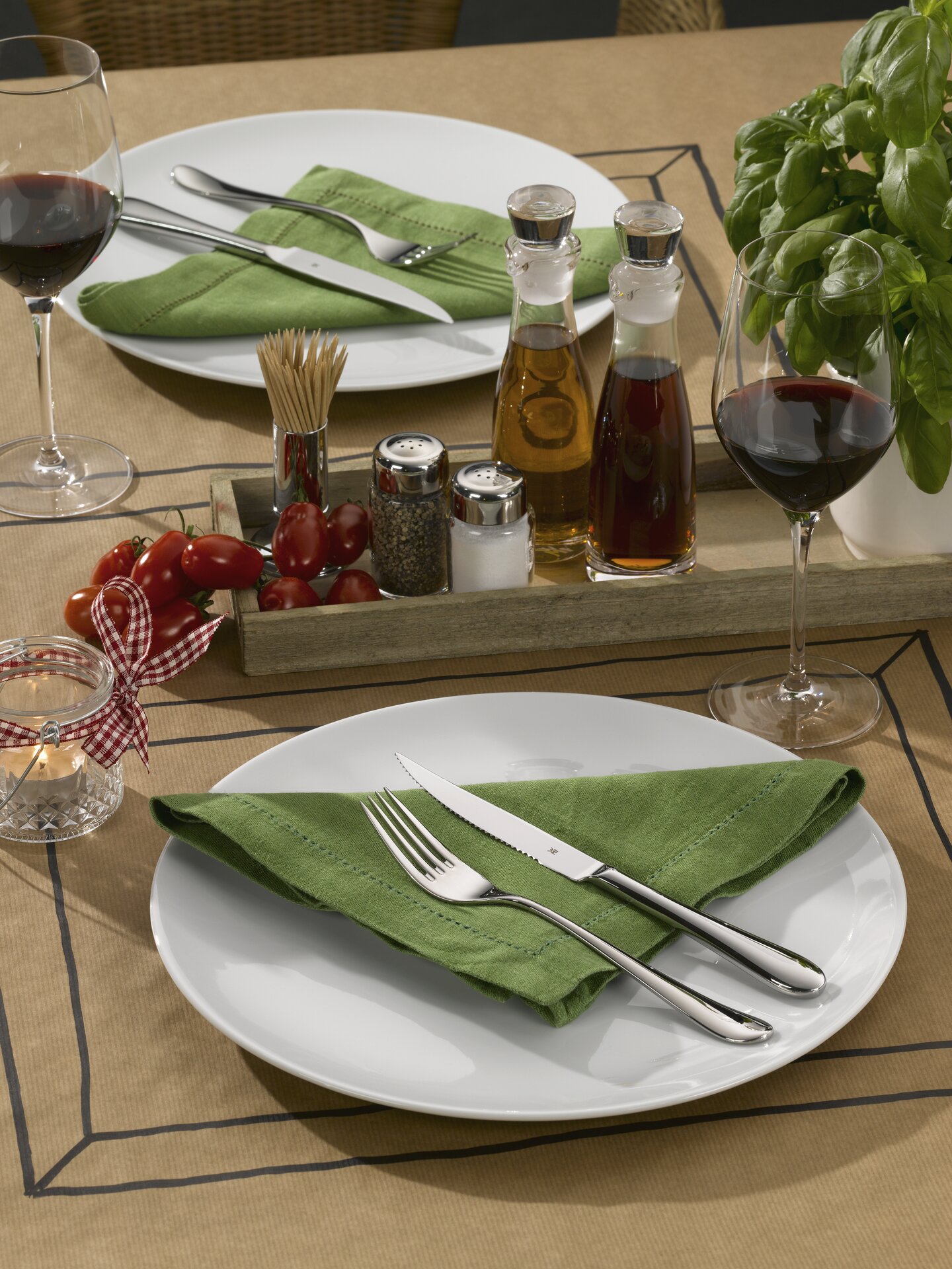 Das Steakmesser eignet sich durch seine scharfe Klinge aus Spezialklingenstahl zum präzisen Zerteilen von Steaks in allen Varianten. Mühelos schneidet das Hohlheftmesser mit Wellenschliff saubere und mundgerechte Stücke, das Verzehren des perfekten Steaks wird so zum mehrfachen Genuss. Steakmesser und Steakbestecke von WMF sind als Besteckzubehör zu vielen Kollektionen erhältlich.