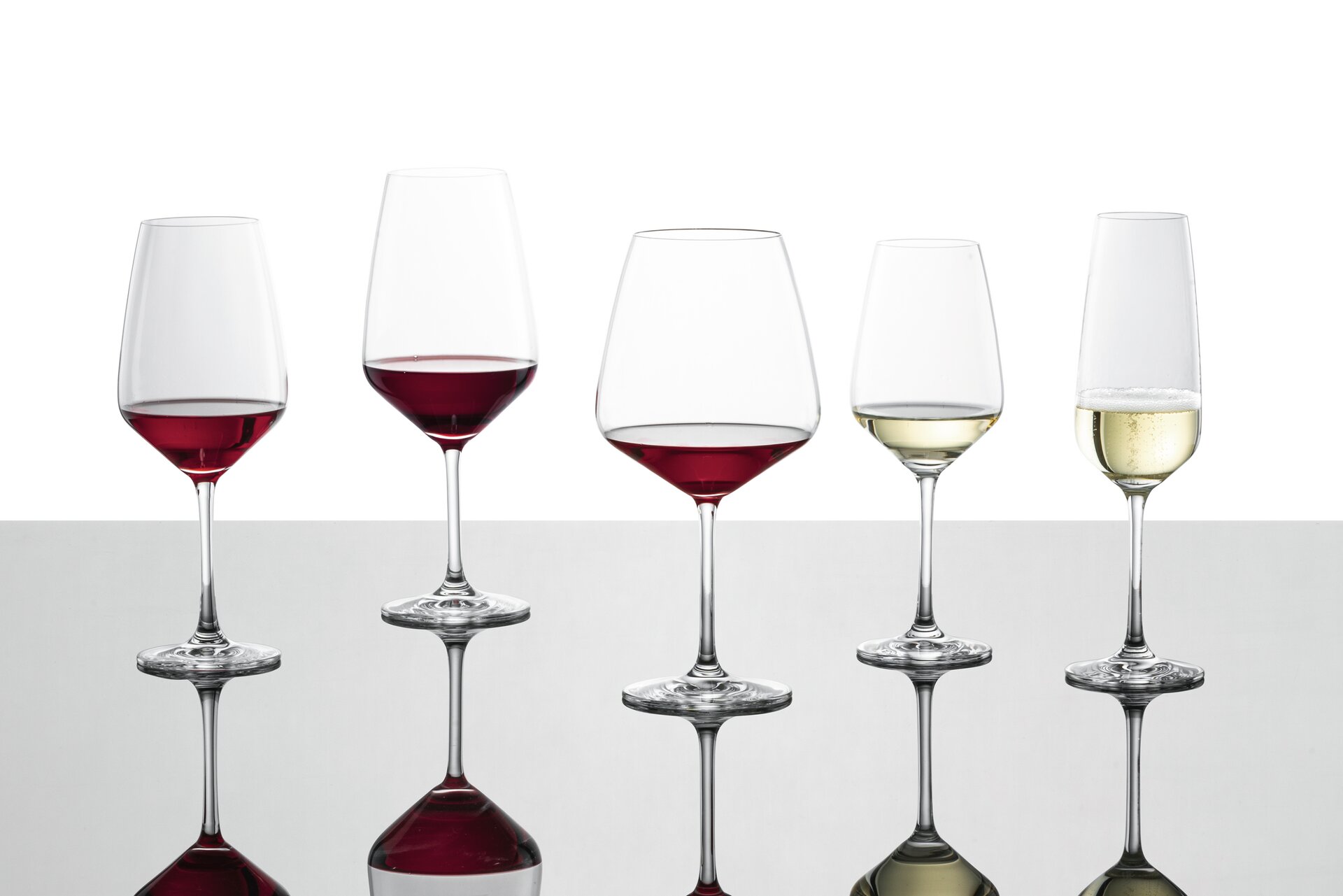 Die Designsprache dieser Serie orientiert sich an klassischen Weinglasformen und interpretiert sie neu im Sinne einer klaren Linienführung. Das Ergebnis ist ein elegantes Ensemble, perfekt für unkomplizierten Genuss und einen zeitlosen Lebensstil.
