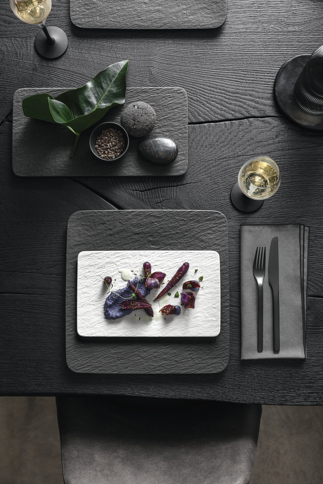 Ein wahres Spiegelbild der Natur: Das minimalistische, ausdrucksstarke Design von The Rock ist natürlichen Schiefergesteinsformen nachempfunden und wird optisch und haptisch in höchst anspruchsvollen Verfahren auf feinstes Premium Porcelain übertragen.