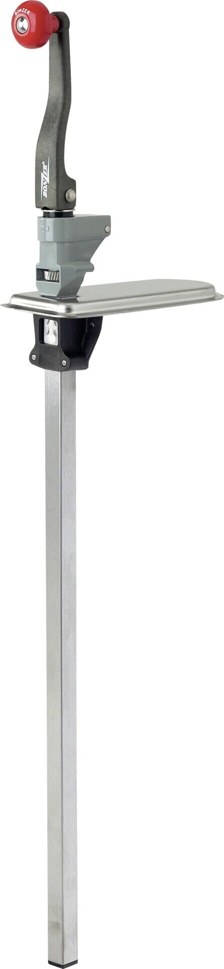 Massiver, robuster Tischdosenöffner. Führungsstange und Grundplatte aus Edelstahl, Kopf lackiert. Für Tischplatten bis max. 5,5 cm Stärke. Es wird empfohlen, den Dosenöffner nach jedem Gebrauch zu reinigen! Für Dosen bis 56 cm Höhe. Für ein tägliches Öffnen von ca. 20 Dosen geeignet.