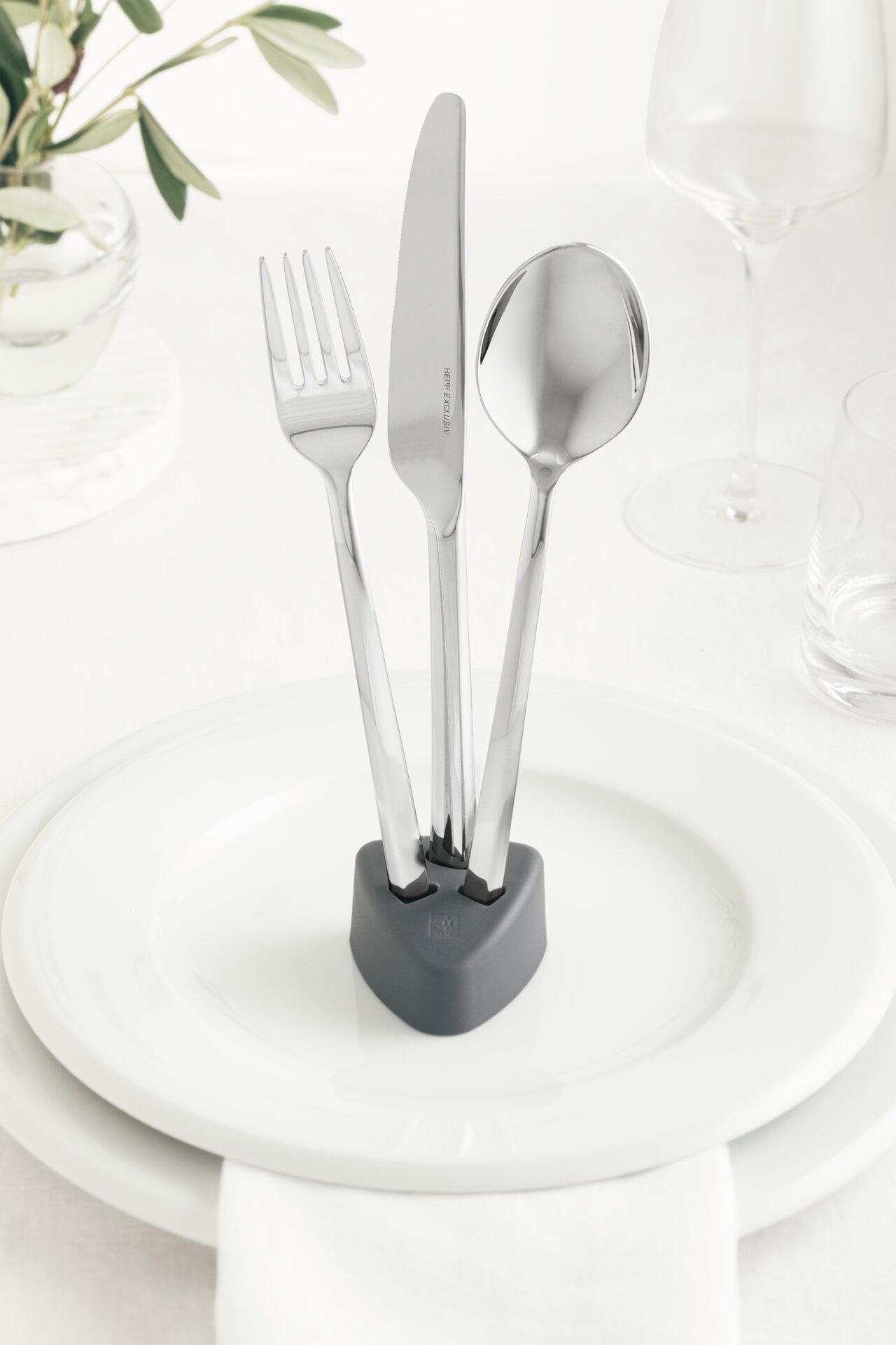 TRILOGIE besticht durch seine elegante Form mit vertrauten Proportionen und einem raffinierten Profilwechsel der Querschnitte am Stiel. Der einzigartige Charakter der neuen Besteck-Kollektion ist von einer natürlichen Bewegung geformt, die von einem abgetrennten Zweig aus der Mitte der Natur inspiriert ist. Das 22-teilige Besteckset wird durch zwei weitere dekorative Tisch-Highlights, einem Besteckhalter und einem Serviettenhalter, ergänzt.