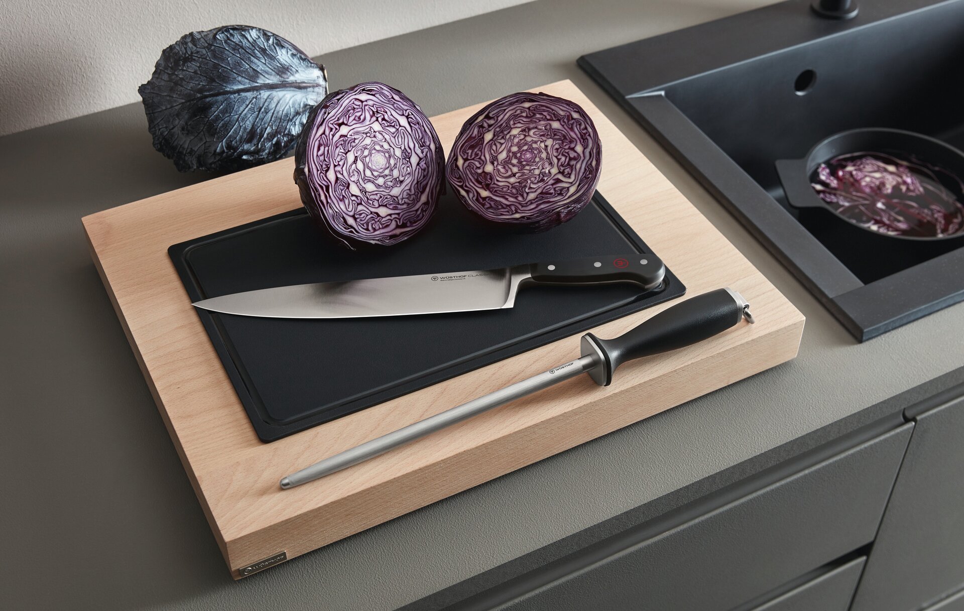 Damit bei ständiger Beanspruchung die Schärfe eines Messers stets konstant ist, wetzen Sie es regelmäßig mit einem Wüsthof Wetzstahl.